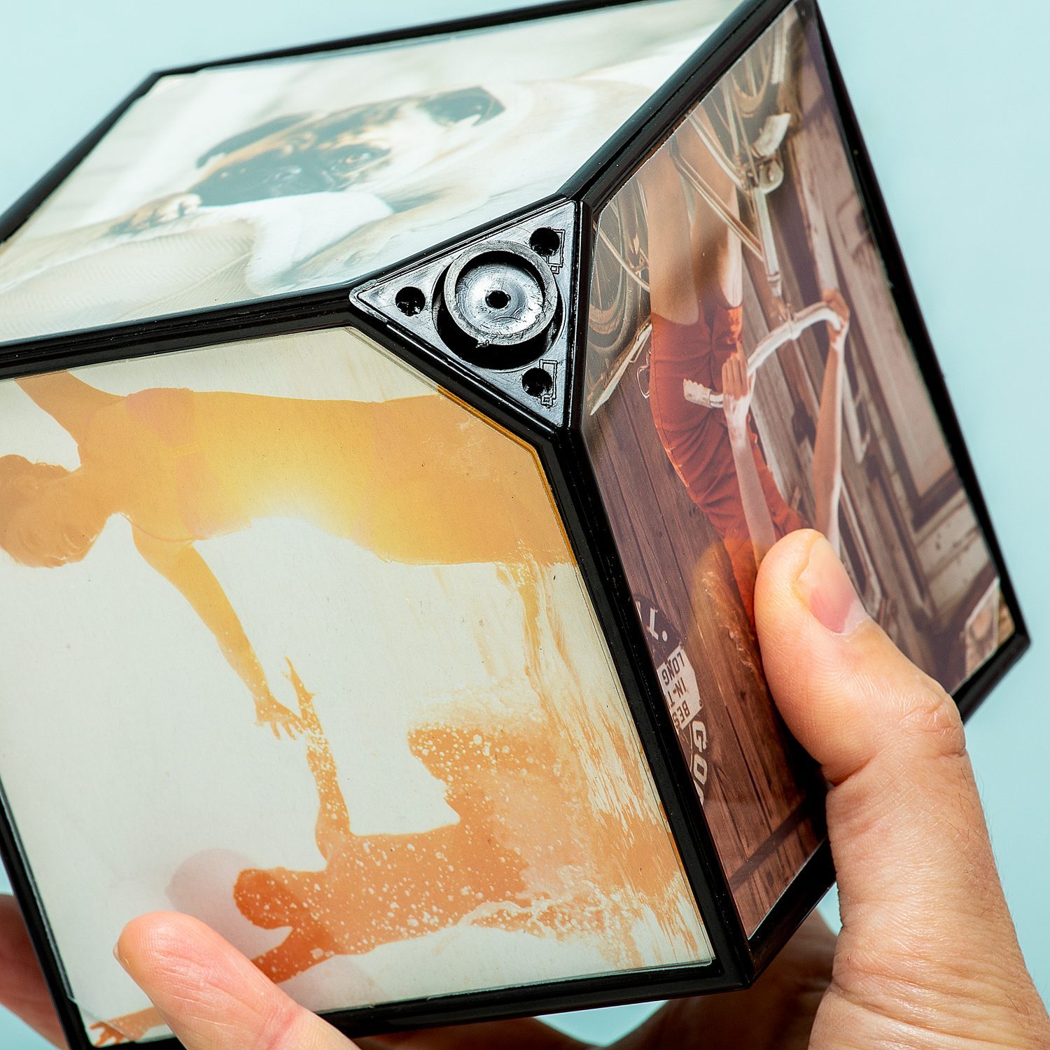 Muttertag, Geburtstag der besten Freundin oder Jubiläum mit der Liebsten: Überrasche die anderen mit dem drehbaren Fotowürfel von Out of the Blue. Aber erst nachdem ihr sechs tolle Fotos von euch zusammen hochgeladen habt! Dieser einzigartige Fotorahmen dreht sich, sodass Sie immer einen Blick auf keinen haben,nur sechs Fotos, die schöne Erinnerungen wecken. Das perfekte Geschenk gibt es nicht? Natürlich tun Sie das!