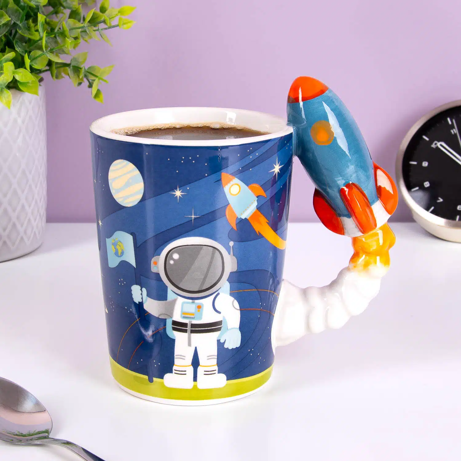 - Tasse mit Weltraumdesign und Raketenhenkel