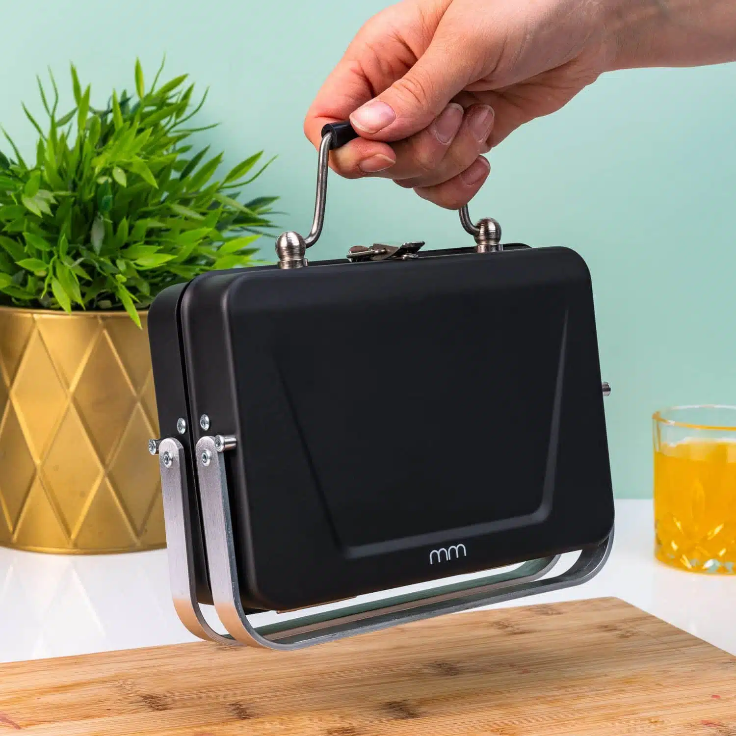 Wenn du unterwegs grillen mรถchtest, kannst du entweder einen Einweggrill kaufen oder dich fรผr ‘s Welt kleinste Barbecue von MikaMax entscheiden. Eine winzige Grill in einem Koffer, so klein, dass du ihn immer mitnehmen kannst. Dieser einzigartige BBQ ist perfekt fรผr den Balkon, fรผr kleine Esser oder fรผr Leute, die gerne beim Campen grillen. Der BBQ hat kleine Fรผรe, sodass der Untergrund nicht heiร wird, und einen praktischen Griff, um ihn zu tragen.