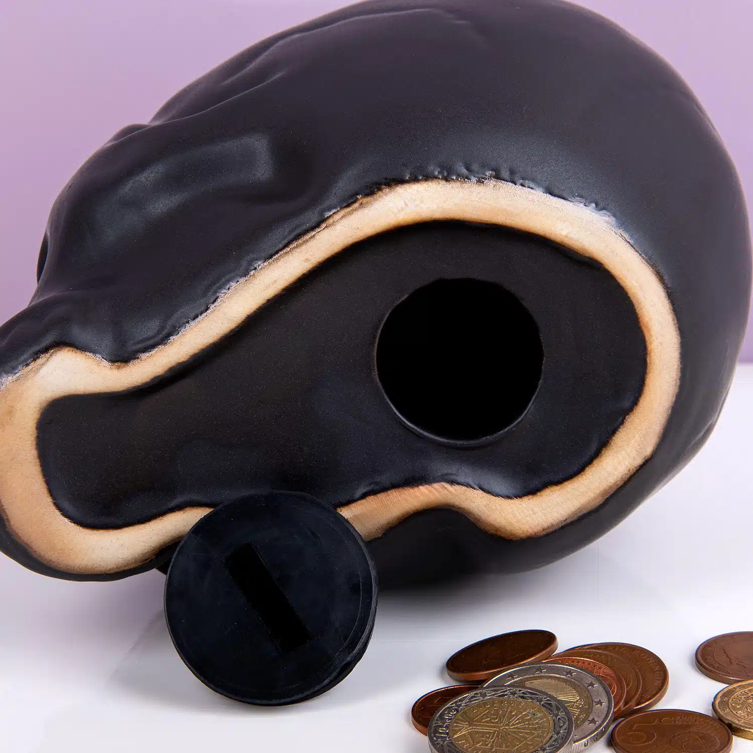 Du kannst dein Geld nicht mit ins Jenseits nehmen, aber mit dieser Schädel-Spardose von Kikkerland bewahrst du deine Münzen ironischerweise im Symbol des Todes auf. Für manche mag diese Art zu sparen ein wenig makaber erscheinen, aber wer offen dafür ist, wird sicherlich den Humor dahinter erkennen. Durch ihre schwarze Farbe und das hochwertige Keramik ist dieser Schädel auch noch ein besonderer Hingucker in deinem Interieur. Stelle ihn in dein Wohnzimmer oder Büro und du wirst jedes Mal an dein Sparziel erinnert.