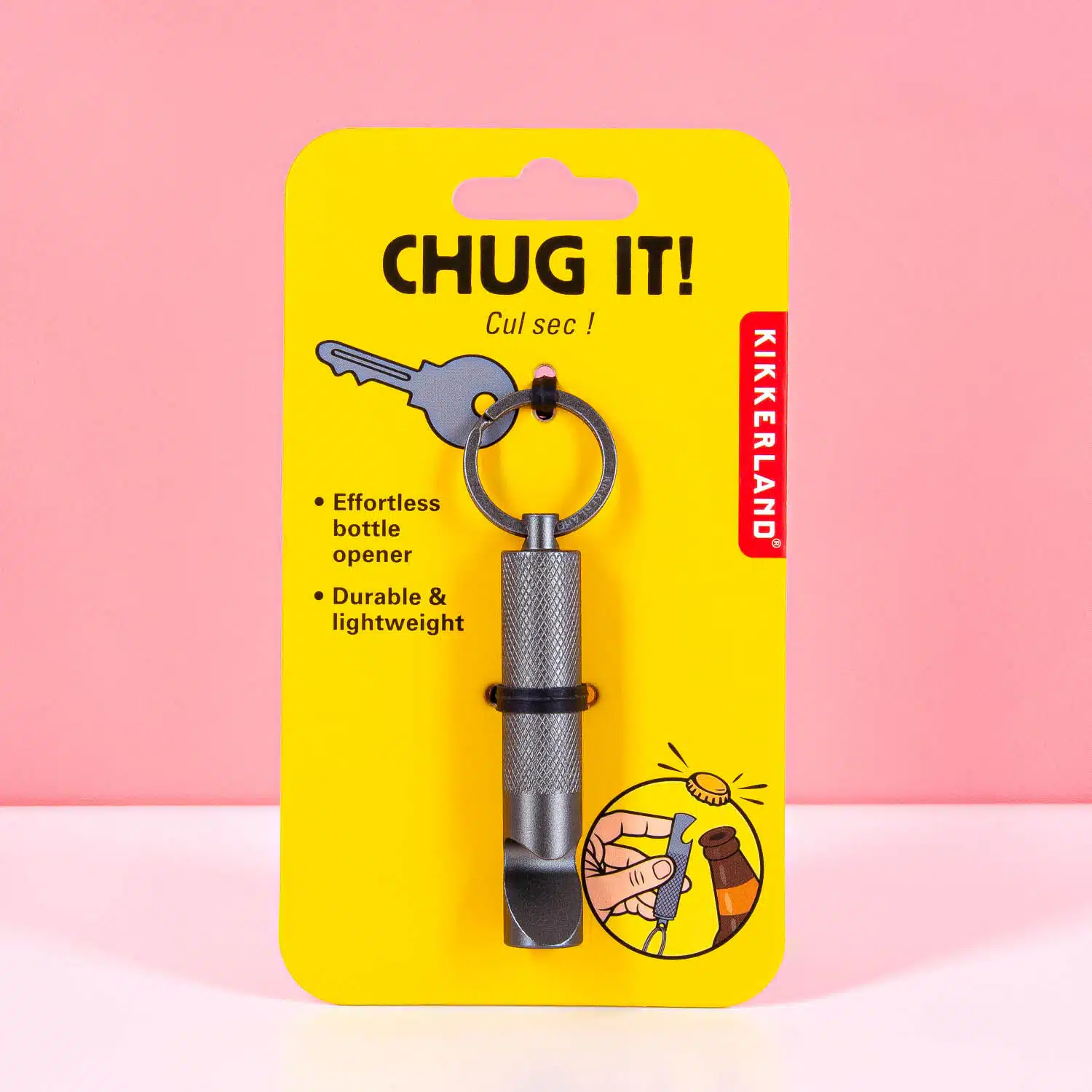 Mit dem Schlüsselanhänger-Flaschenöffner von Kikkerland bist du immer bereit für eine Party. Einfach an den Schlüsselbund hängen und du kannst jederzeit ein Bier oder eine Limo öffnen – egal ob auf einem Festival, im Park oder bei einer spontanen Feier. Leicht, stylisch und unverwüstlich. Ein lustiges und praktisches Geschenk für alle, die Durst haben.