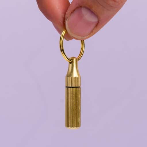 Von nun an steht nichts mehr im Weg, wenn Sie Ihre Pakete sofort öffnen möchten. Den Schlüsselanhänger mit Minimesser von Kikkerland haben Sie immer griffbereit. Ein super praktischer Schlüsselanhänger, an dem ein kleines, aber scharfes Messer befestigt ist. Natürlich im handlichen Schutzrohr zum Zuschrauben. Und durch seine Messingfarbe sieht es auch an Ihrem Schlüsselbund stilvoll aus.