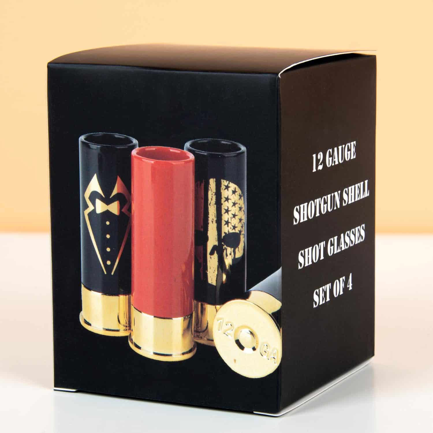 Wenn Sie an einen Schuss denken, denken Sie wahrscheinlich eher an einen Schuss Alkohol als an eine Schrotflinte. Der Hagelmuster-Schnapsgläser (4er-Set) kombinieren beides. Diese originellen Schnapsgläser sehen aus wie eine Schrotpatrone. Sie sehen aus, als kämen sie direkt aus einer Schrotflinte,Aber keine Sorge: Für die Herstellung dieser Gläser sind keine Tontauben gestorben.