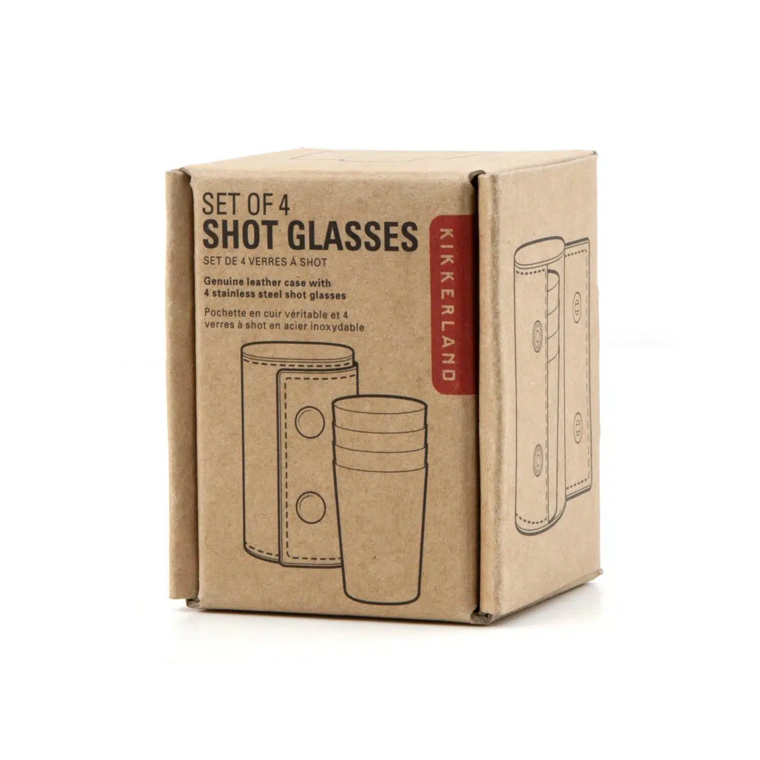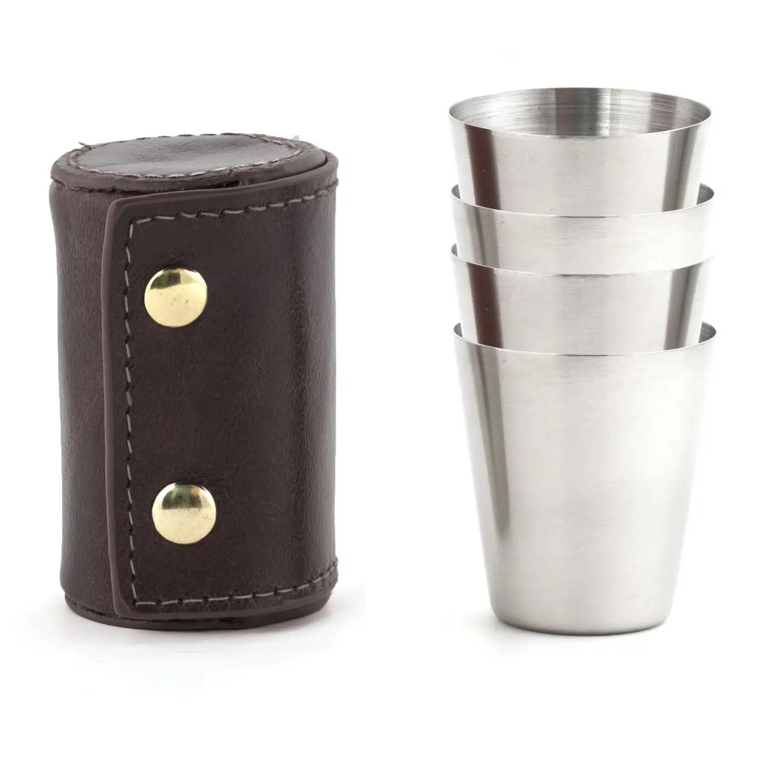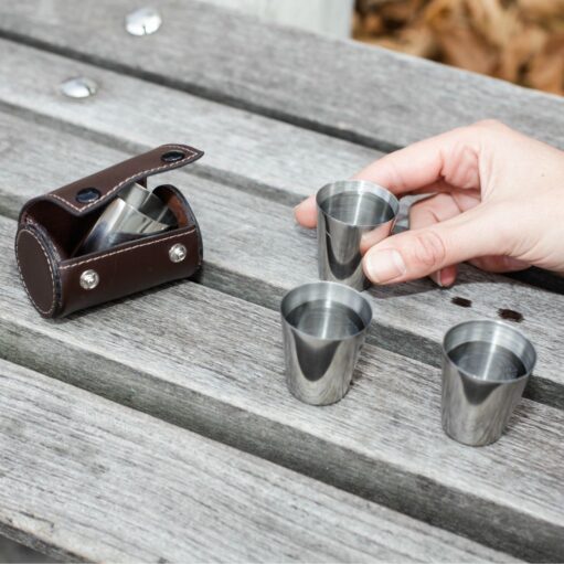 Edelstahl-Shotgläser mit Lederetui von Kikkerland