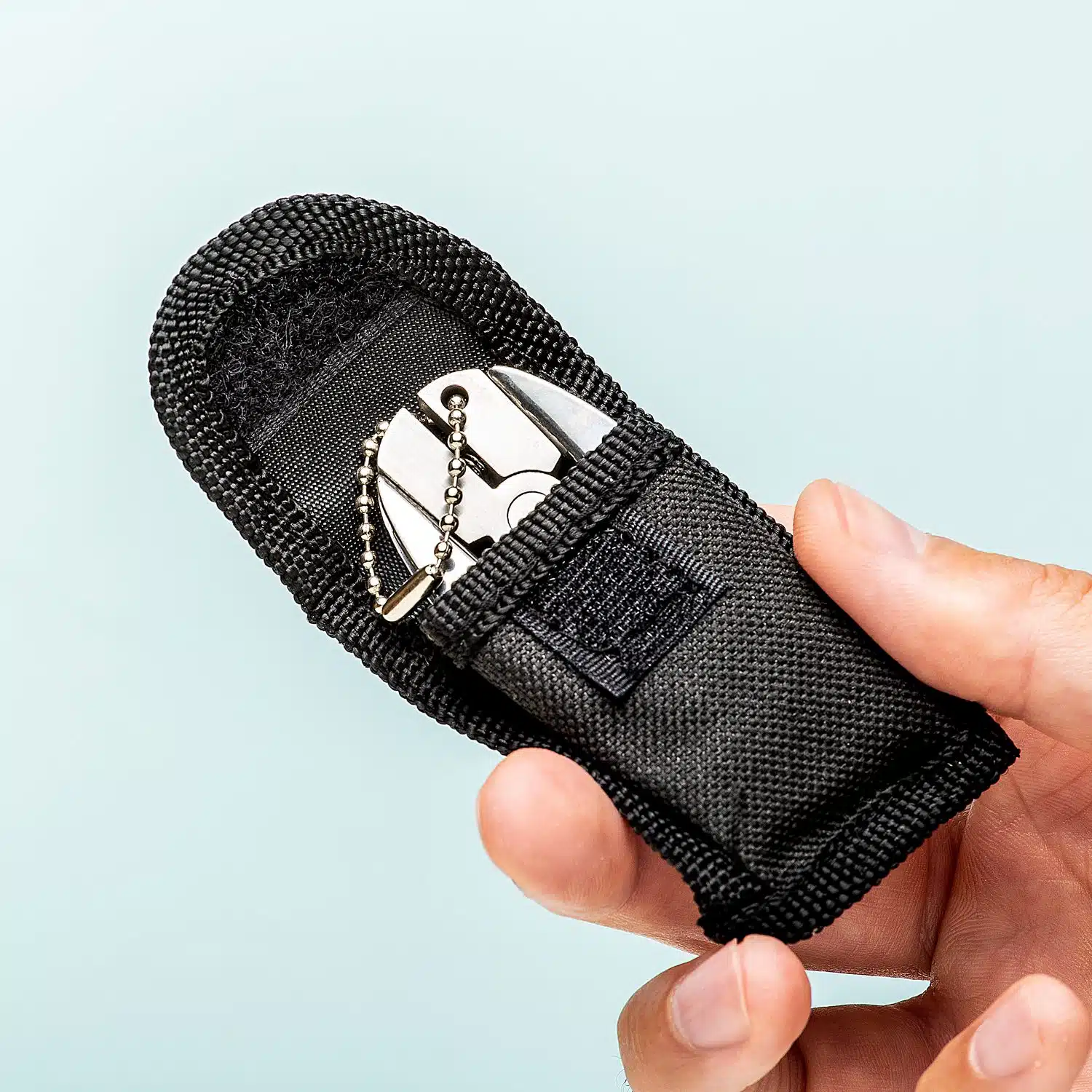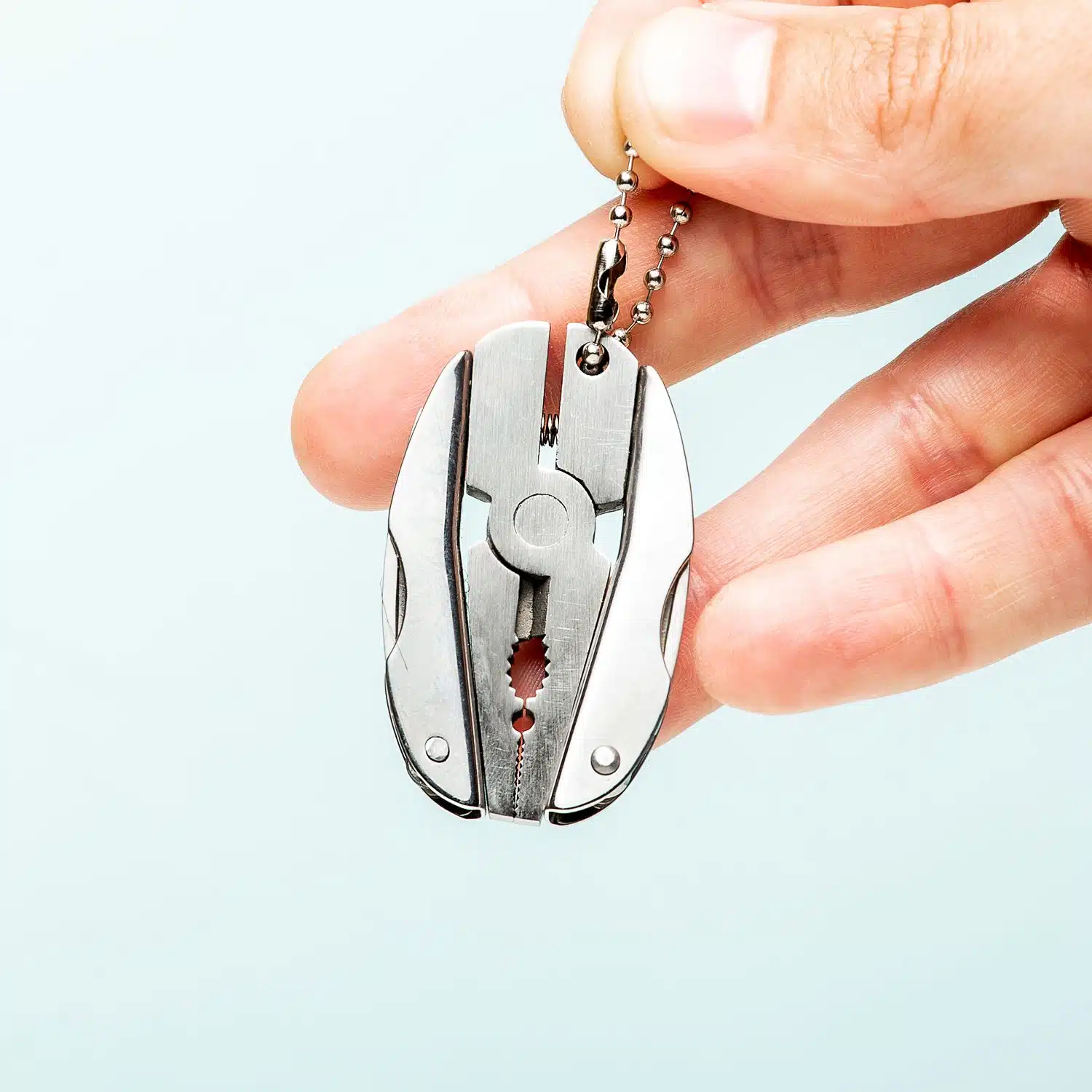 Wenn Sie das Multitool öffnen, stoßen Sie zunächst auf eine Zange. Praktisch, wenn Sie plötzlich einen rostigen Nagel aus dem Rahmen ziehen möchten. Es hat auch ein Messer, einen Schlitz- und Kreuzschlitzschraubendreher und eine Stahlfeile. Mit der mitgelieferten Kette können Sie es ganz einfach an Ihren Schlüsselbund hängen. Inklusive Aufbewahrungskoffer. Sie können das Skarabäus-Multitool online bei Vripper kaufen.