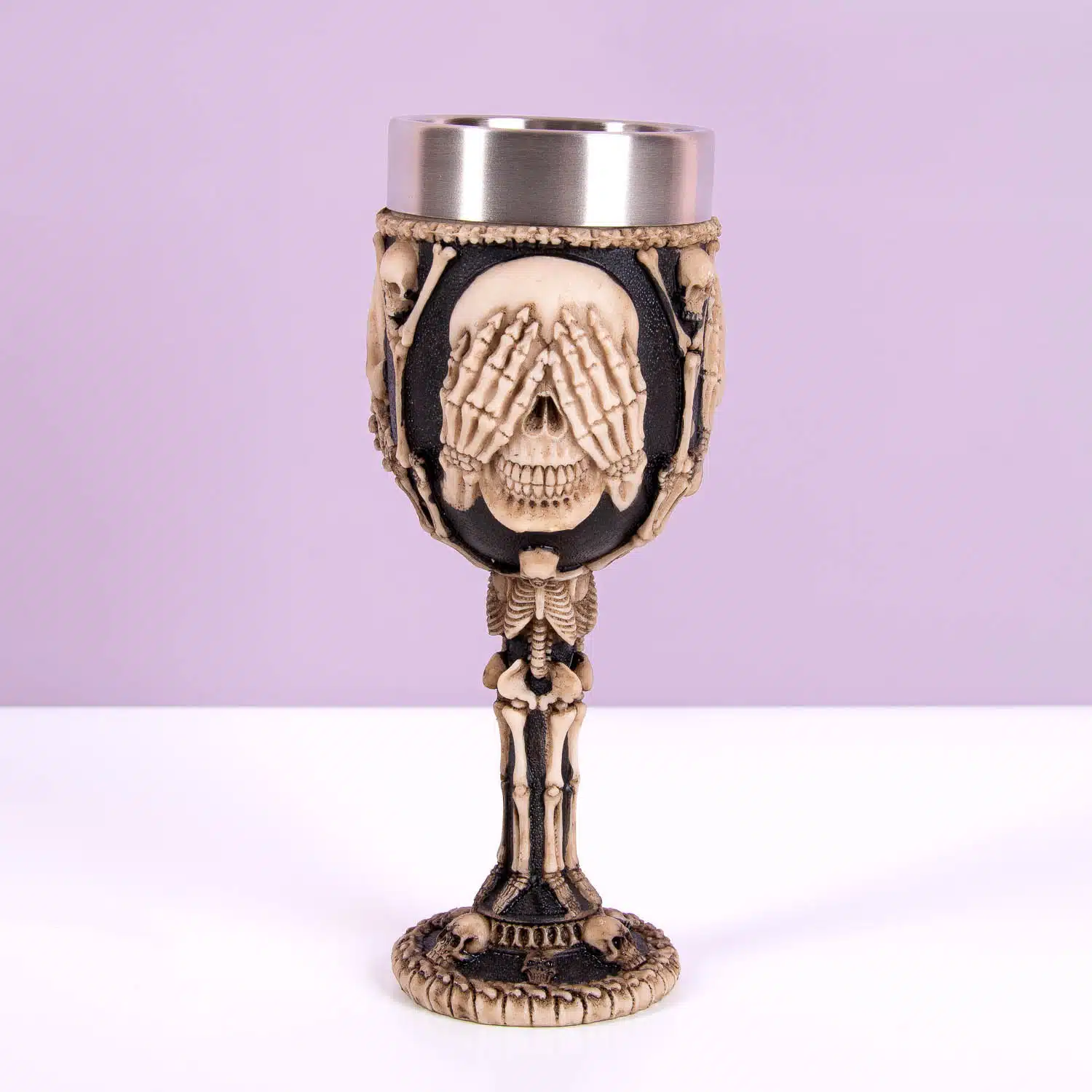 Wenn du noch nach dem perfekten Accessoire für Halloween suchst, kannst du jetzt aufhören: Der Skelett Becher ist eine gruselige Art, dein Lieblingsgetränk zu genießen. Perfekt für Halloween-Partys! Die Skelette bedecken ihre Augen, ihren Mund und ihre Ohren – nichts sehen, nichts sagen, nichts hören.