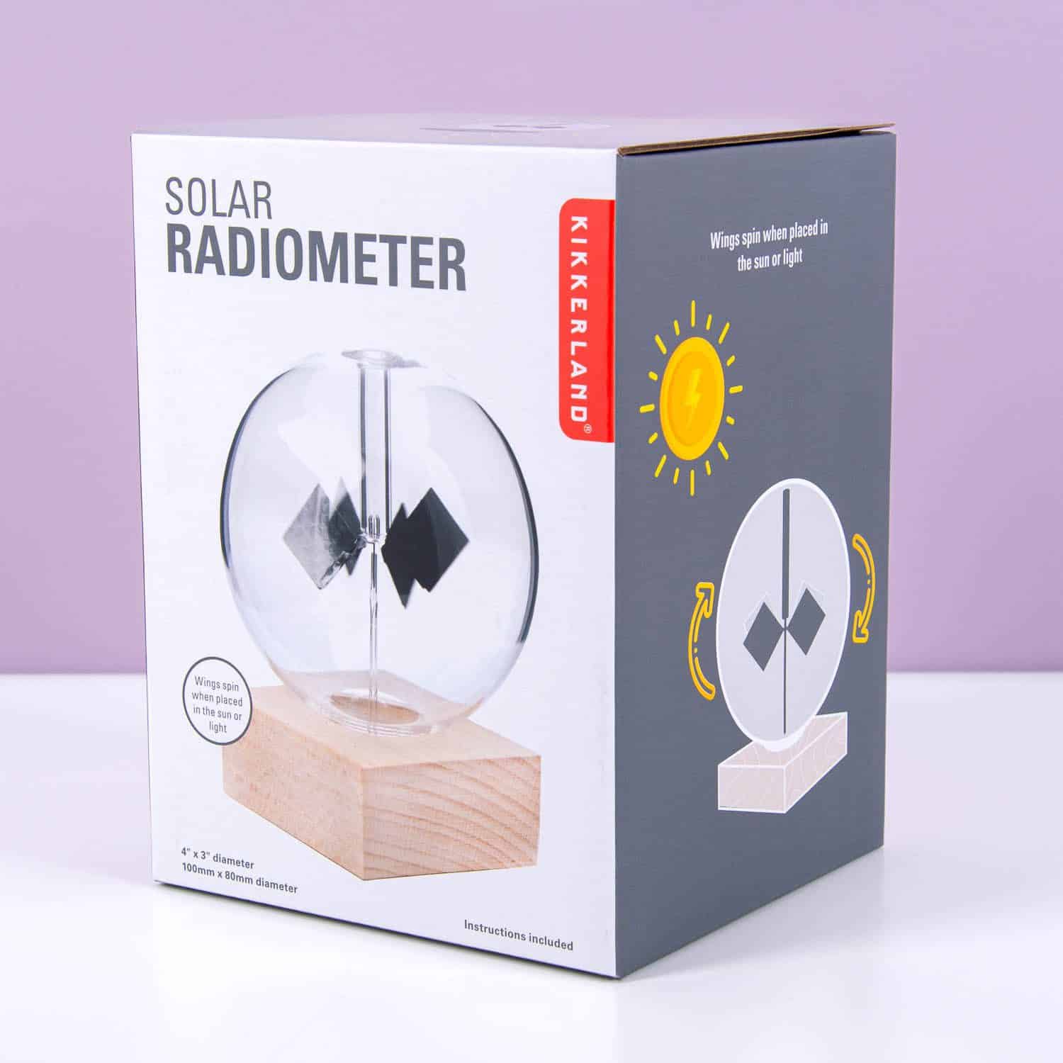 Chemie, Physik, Mathematik; man muss einfach eine Neigung dazu haben. Mรถchtest du Eindruck machen auf einen schlauen Freund oder einfach ein schรถnes Wohnaccessoire haben? Stelle die Solar-Radiometer von Kikkerland auf deine Fensterbank. Diese Radiometer โ oder Lichtmรผhlchen โ wurde 1873 von William Crookes erfunden. Dieser Chemiker schaffte es, das Mรผhlchen mit vier Flรผgeln durch Sonnenstrahlen zum Drehen zu bringen. Die moderne Variante von Kikkerland hat ein stilvolles Design mit einem schรถnen Holzsockel.