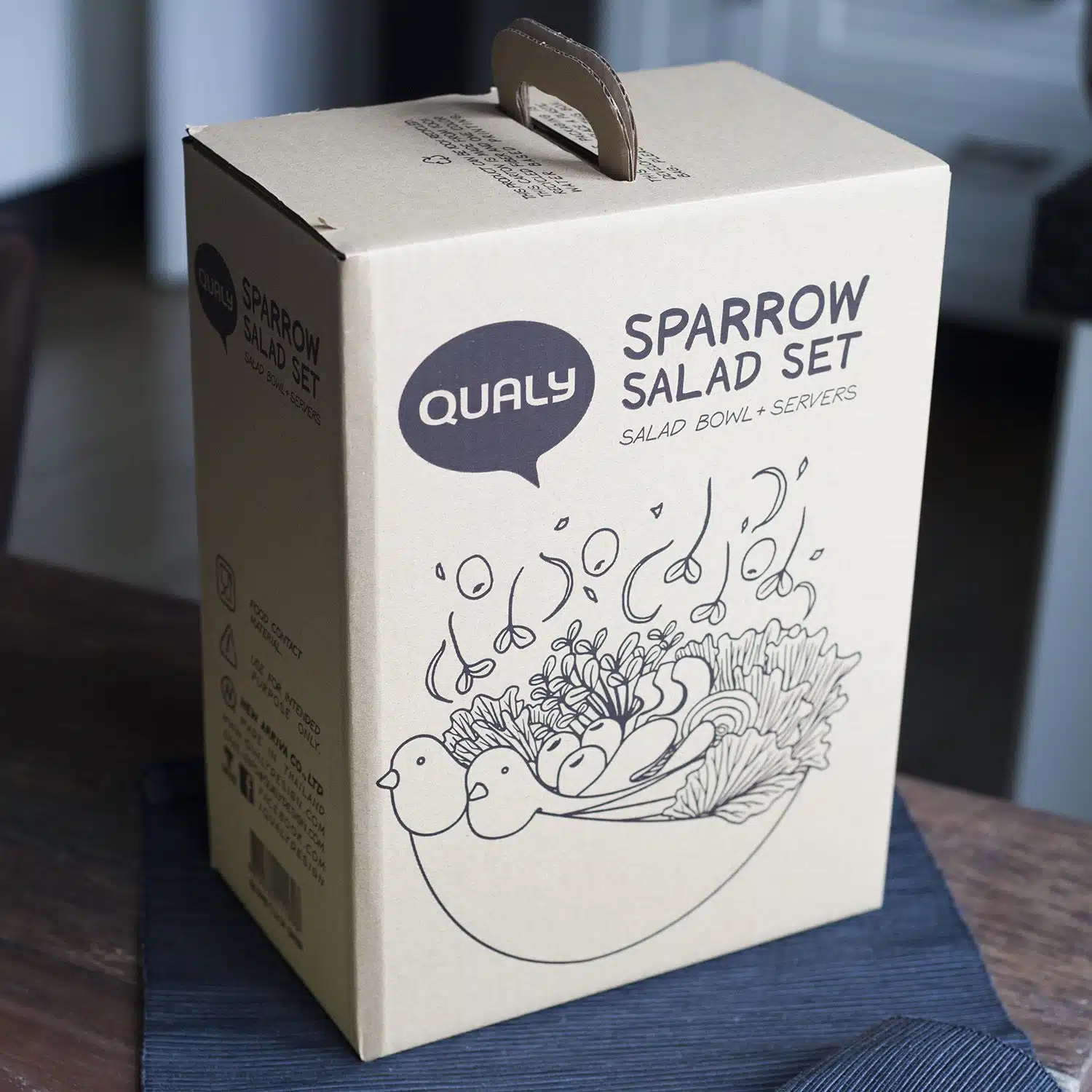 Liebst du Salate und machst du jede Woche ein paar davon? Dann gefällt es dir bestimmt, sie auf eine schöne Weise auf den Tisch zu stellen. Das geht wunderbar mit der Sparrow Salatschüssel und Besteck von Qualy. Dieses Set besteht aus einer Salatschüssel und zwei Servierlöffeln mit kleinen Vögeln darauf. Die Vögel verhindern, dass die Löffel in die Schüssel fallen. Die Sparrow Salatschüssel ist mit Vögeln in verschiedenen Farben erhältlich. Ein tolles Geschenk für Menschen, die gerne kochen.