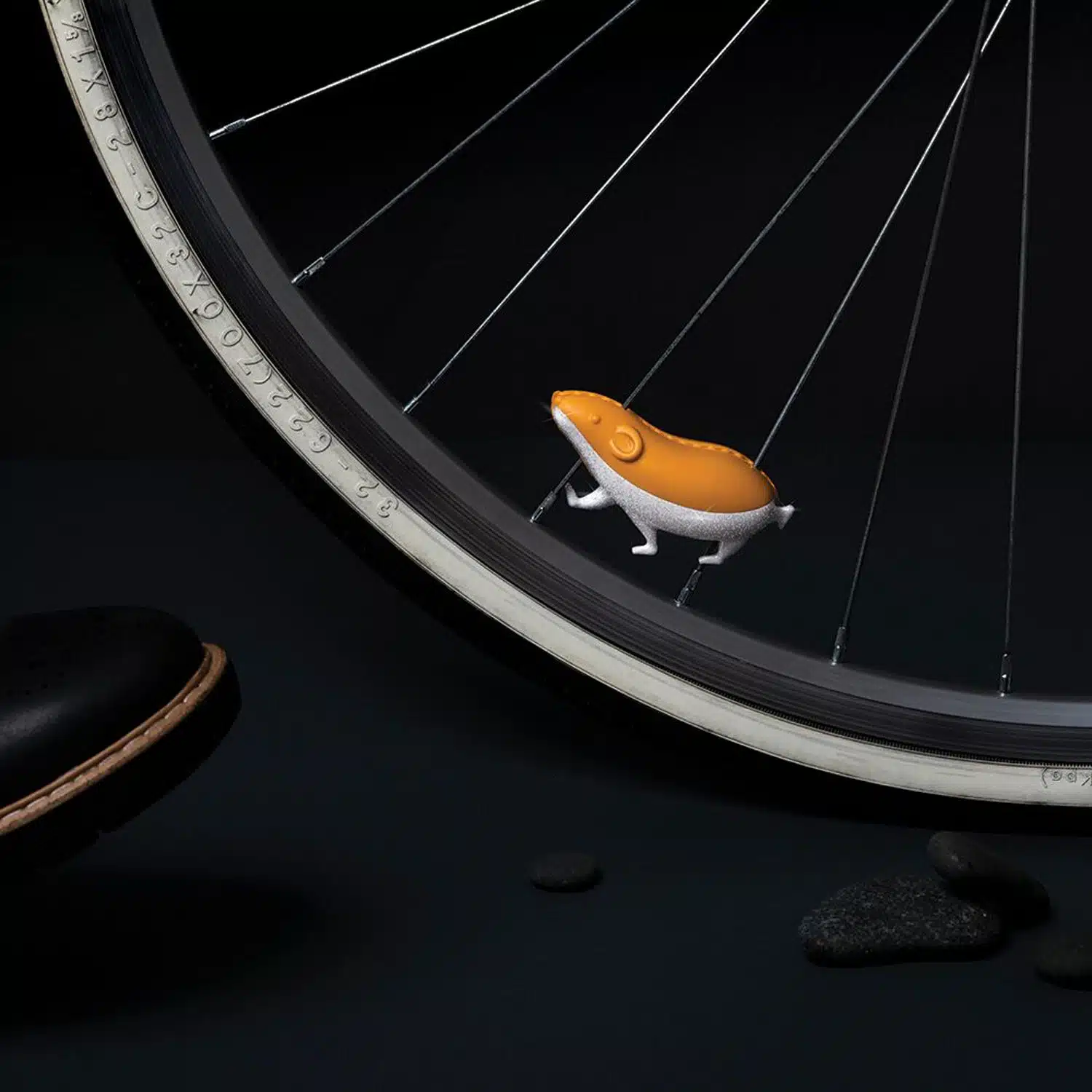 Mit dem Fahrradzubehör Speedy von Ototo verwandeln Sie Ihr Fahrrad in einen echten Hingucker. Dieser glückliche Hamster läuft vergnügt auf Ihrem Fahrradrad. Der Hamster ist eine Art Fahrradperle, die an Ihren Speichen befestigt wird. Wenn Sie fahren, scheint der Hamster herumzulaufen. Der Bauch des Hamsters ist mit Glitzer bedeckt, sodass er auch das Licht einfängt. Mit diesem einzigartigen Fahrradhamster sieht Sie jeder schon von weitem kommen.