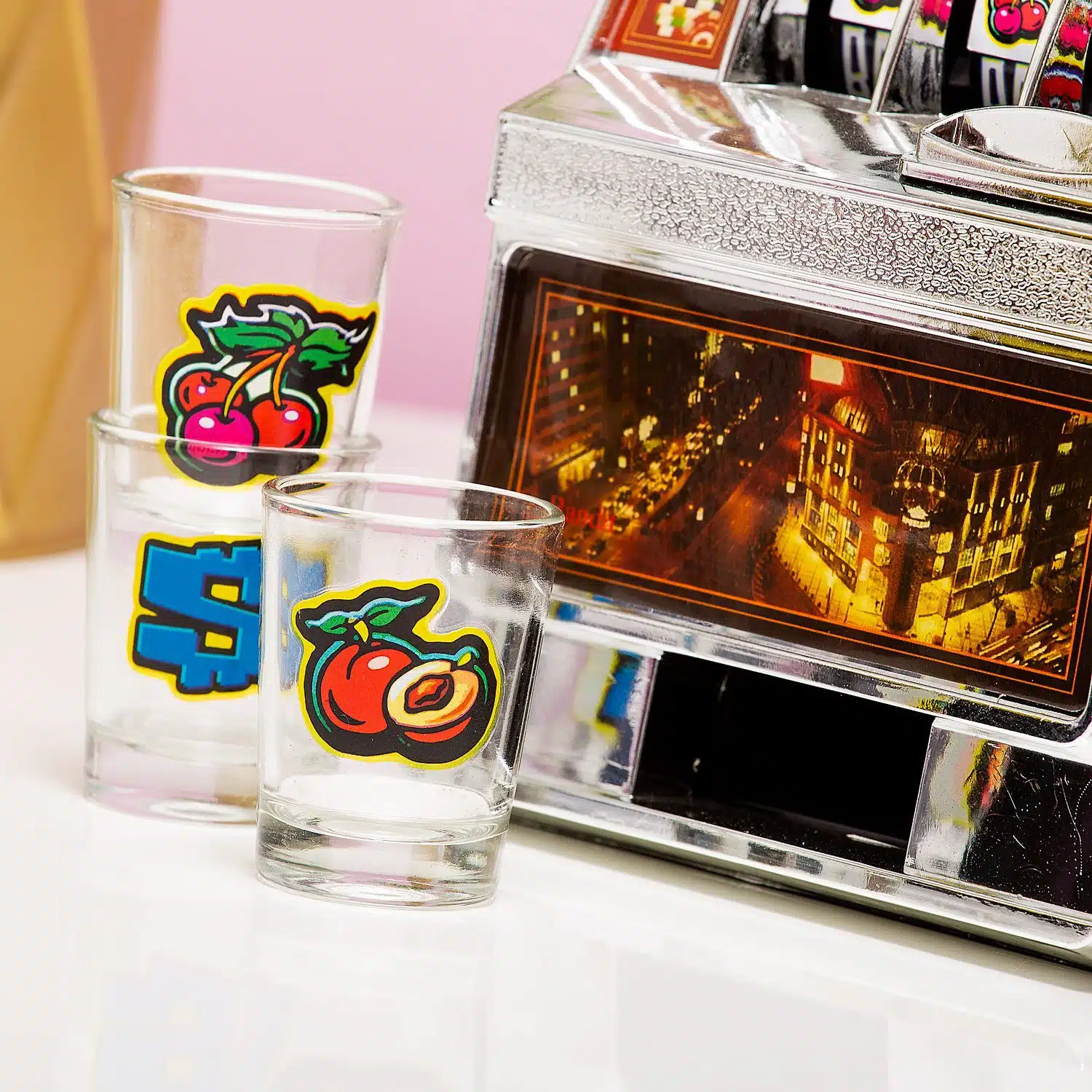 Spielautomaten-Trinkspiel mit Schnapsgläsern