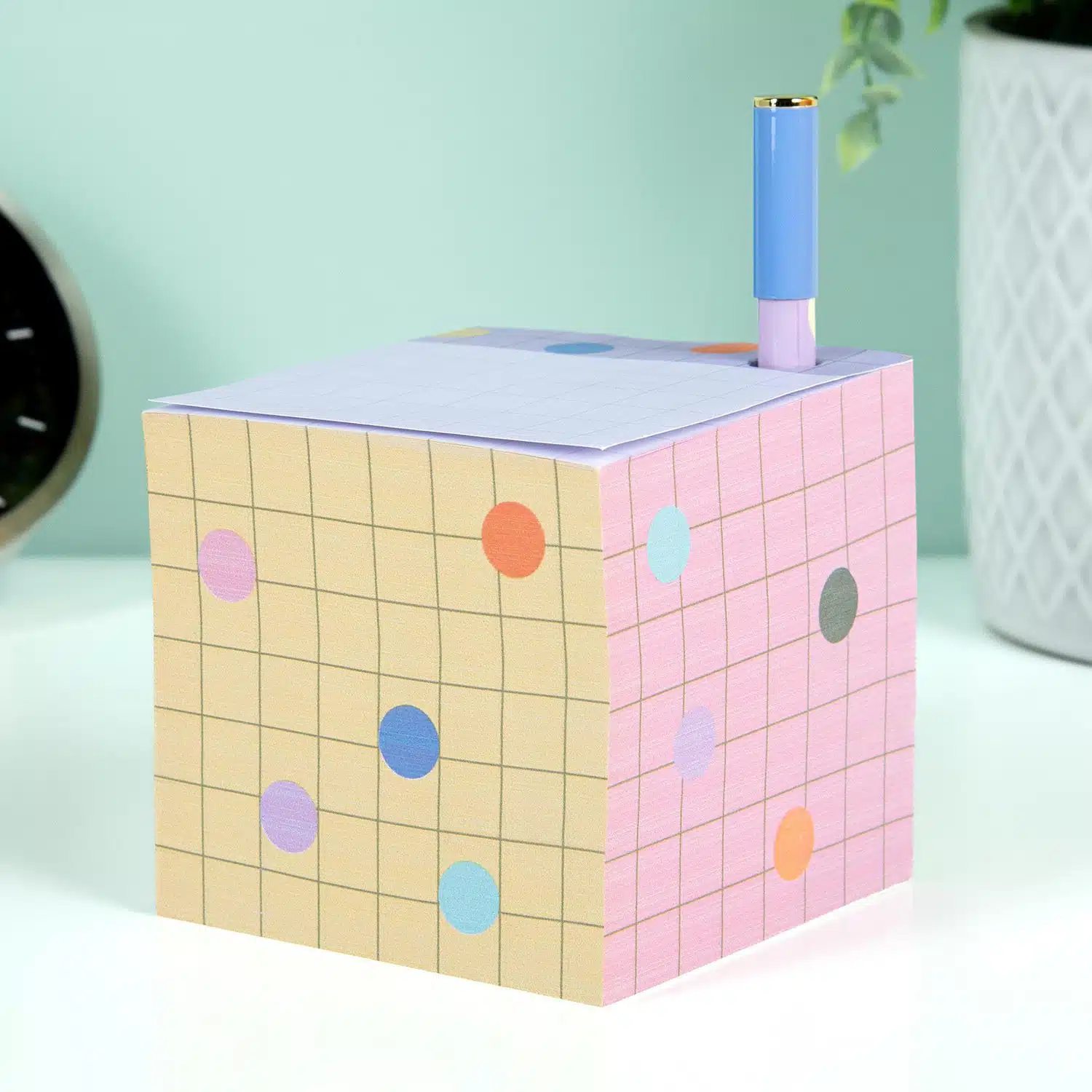 Schรถne Schreibtischaccessoires machen das (Haus)arbeiten viel angenehmer. Der Sticky Notes Stifthalter von Kikkerland ist ein solches Item, das das Schreiben von Memos und das Notieren von Nachrichten verschรถnert. Dieser Block besteht aus 580 Haftnotizen in frรถhlichen Pastellfarben. Aber das ist noch nicht alles: Er hat auch eine รffnung in der Ecke, in der ein passender Stift steckt. So hast du immer einen Stift zur Hand, um etwas aufzuschreiben.
