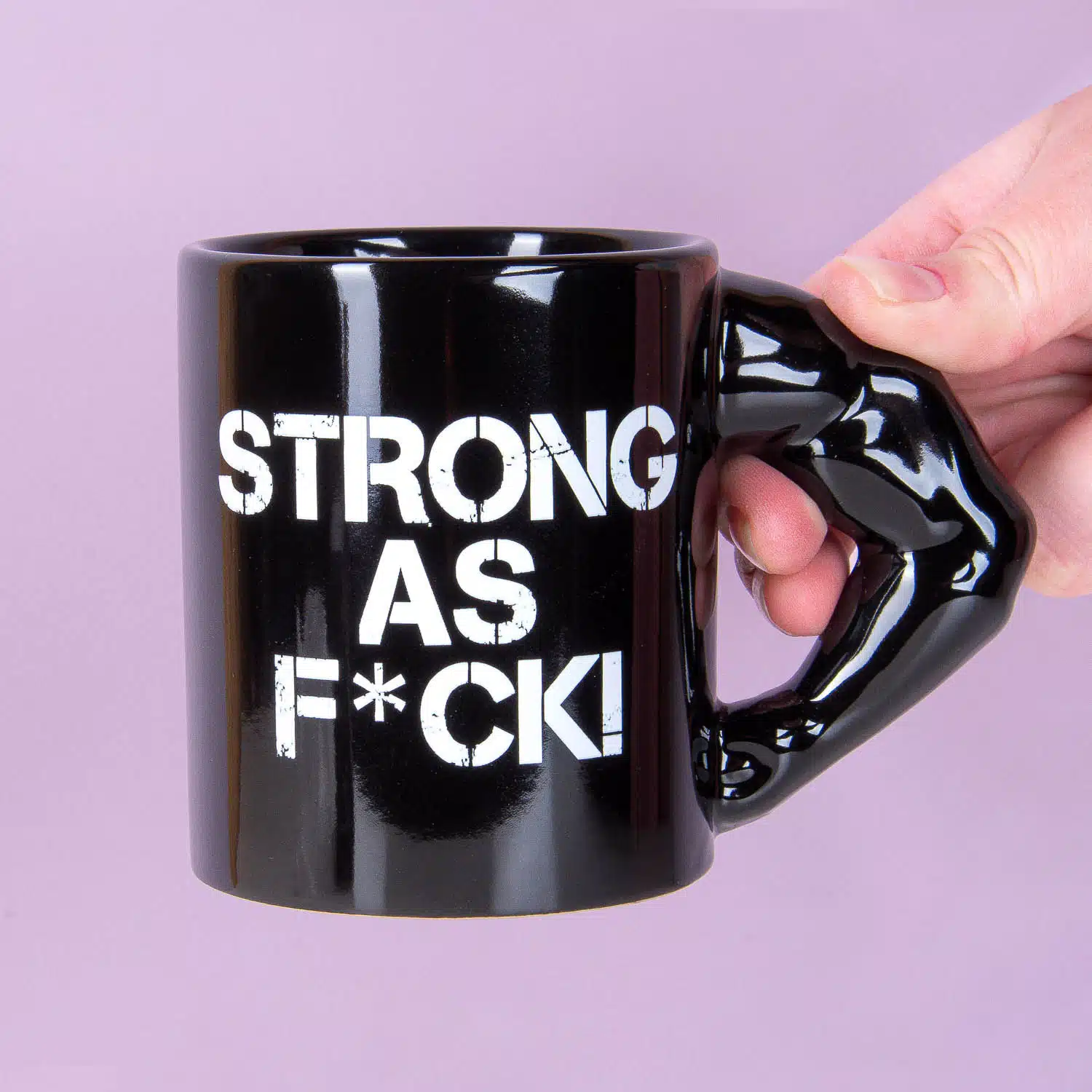 Bist du auch strong as fuck? Dann verdienst du diese Tasse! Mit ihrem muskulรถsen Arm als Henkel zeigst du sofort, dass du keine Spielchen machst. Perfekt fรผr deinen Morgenkaffee, wenn du dich selbst motivieren musst, oder einfach um deinen Kollegen zu zeigen, wer hier der Boss ist. Ein freches Geschenk fรผr jeden, der Humor liebt und sich selbst ernst nimmt… oder gerade nicht!