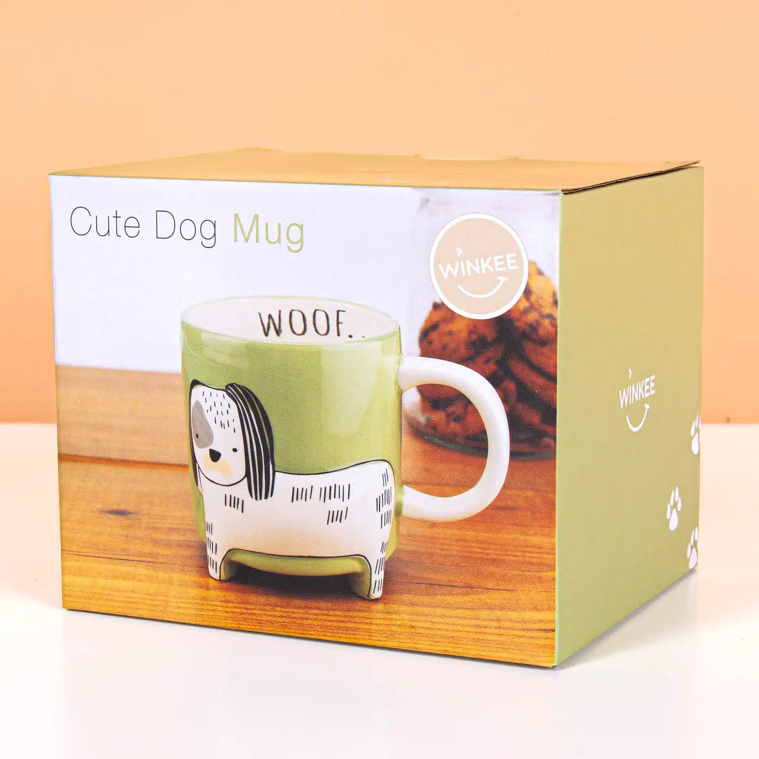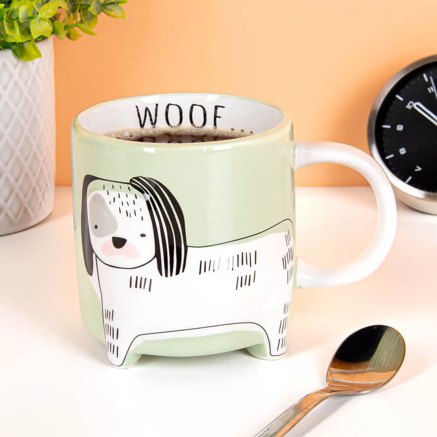 Morgenlaune im Keller? Nicht, wenn du mit diesem süßen Hündchen aufwachst, das “WOOF” aus deiner Kaffeetasse bellt. Diese grüne Tasse hat ein Hündchen darauf, das so lieb guckt, dass deine Morgenlaune keine Chance hat. Perfekt fürs Büro, zu Hause oder einfach überall, wo du Kaffee brauchst und ein bisschen Hundeliebe. Denn warum solltest du normal Kaffee trinken, wenn du auch woofen kannst?