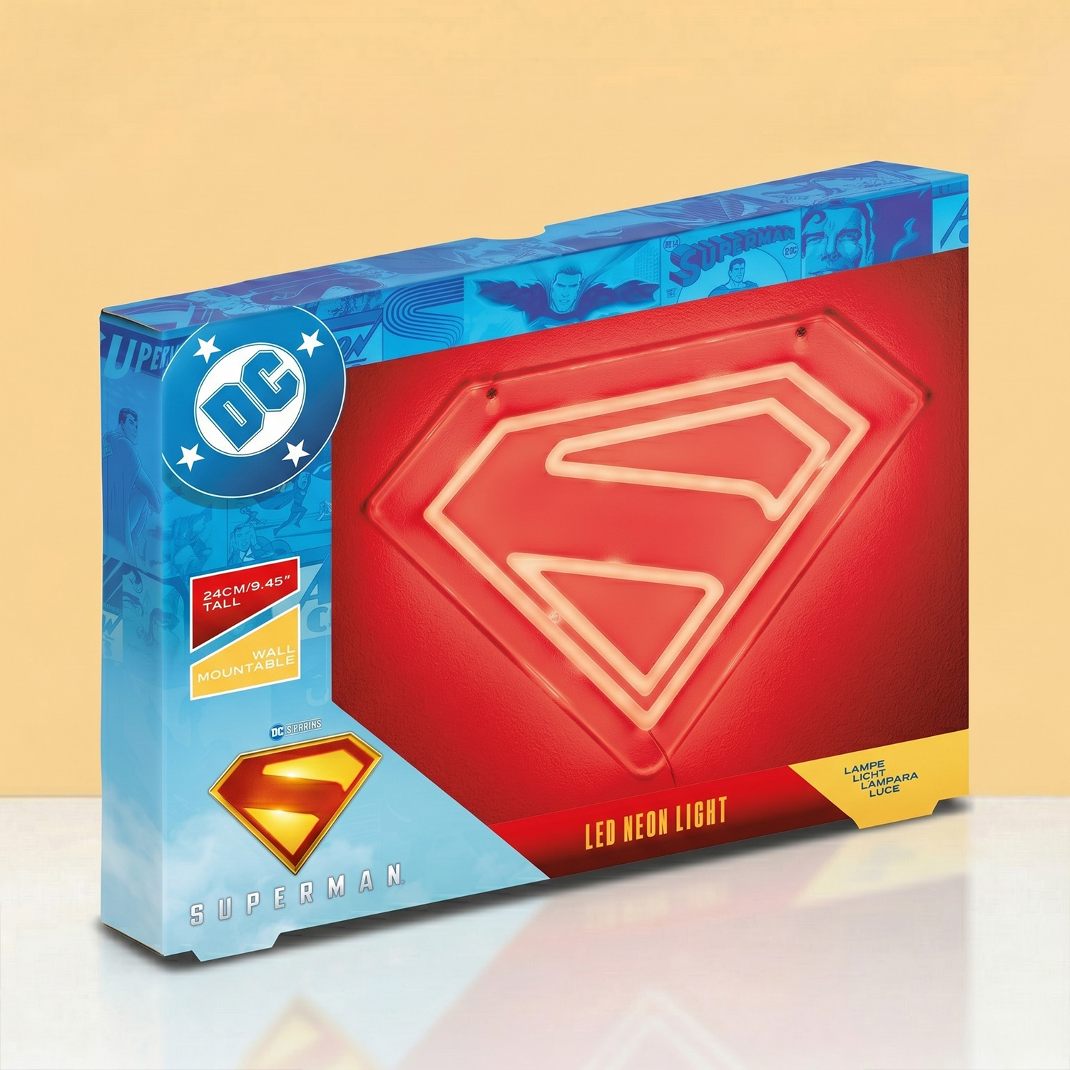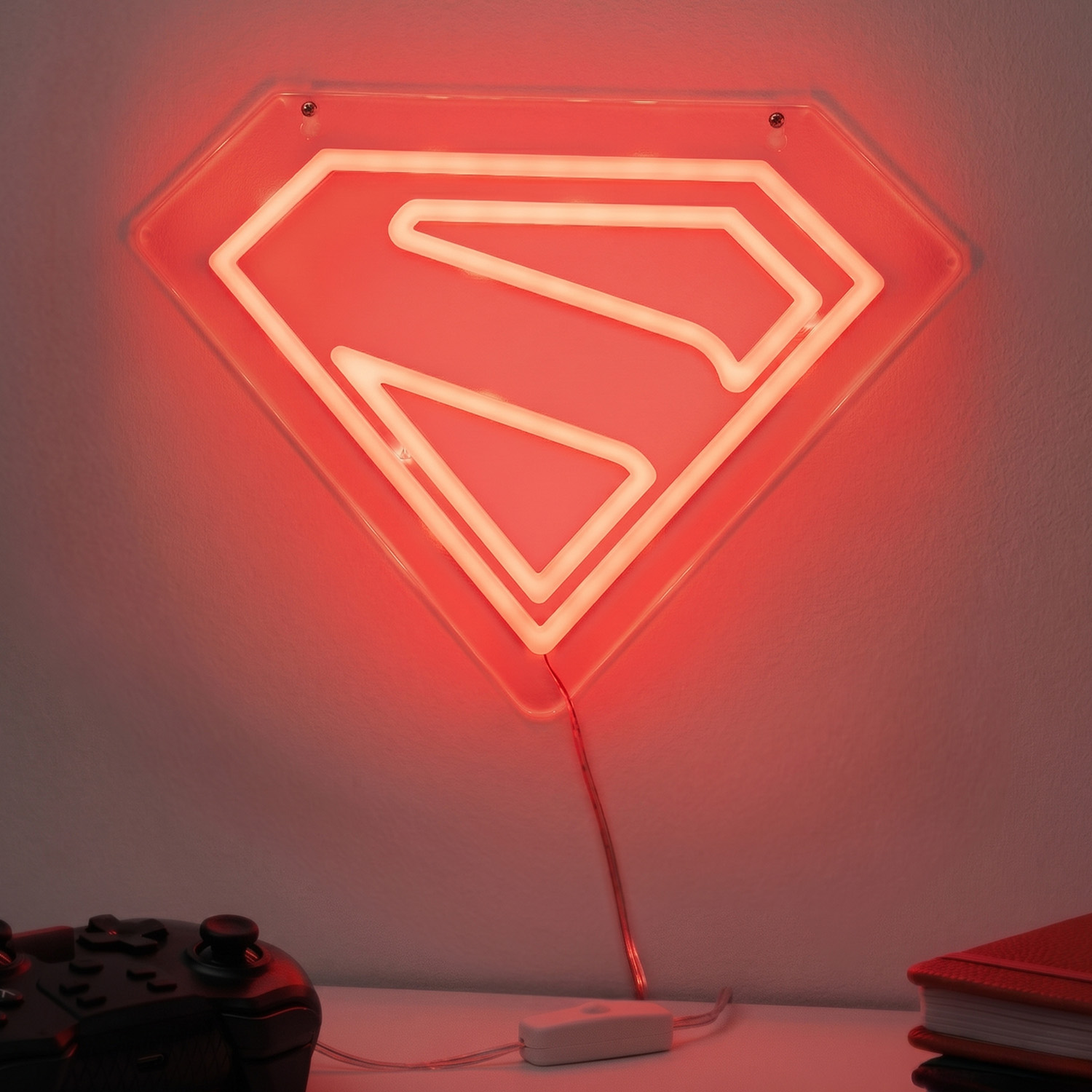 Kann dein Kleiner einen Superhelden gebrauchen? Hรคng den Man of Steel an seine Wand mit der Superman Schild Neon-Wandleuchte. Diese super coole Leuchte sieht aus wie das ikonische S-Schild unseres Helden in Neon, ist aber in Wirklichkeit eine energiesparende LED-Leuchte. Schaltest du sie ein, verbreitet sie rotes Licht.