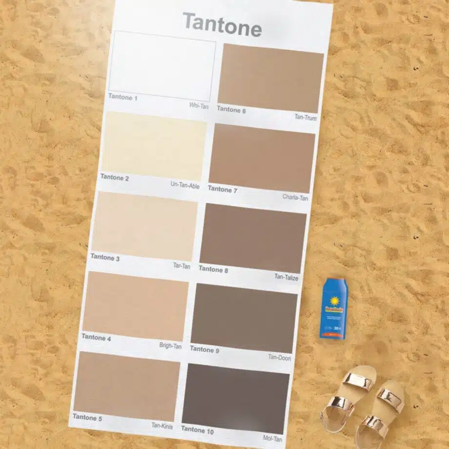 Fรผr alle, die diesen Sommer planen, eine schรถne Brรคune zu bekommen โ dieses Tantone Strandtuch ist perfekt, um den Brรคunungsprozess genau im Auge zu behalten. Von Whi-Tan zu Tan-Trum oder besser gesagt: von schneeweiร zu goldbraun. Das Handtuch ist eine Farbkarte verschiedener Brauntรถne, sodass du direkt auf dem Tuch sehen kannst, wie braun du schon bist. Natรผrlich inspiriert von der Pantone-Farbpalette. Nimm dieses weiche Handtuch mit an den Strand oder Pool und lass das Brรคunen beginnen. Ein Tipp von uns: Trage beim Sonnenbaden regelmรครig Sonnencreme auf, denn die Farbe Rot ist nicht auf dem Handtuch!