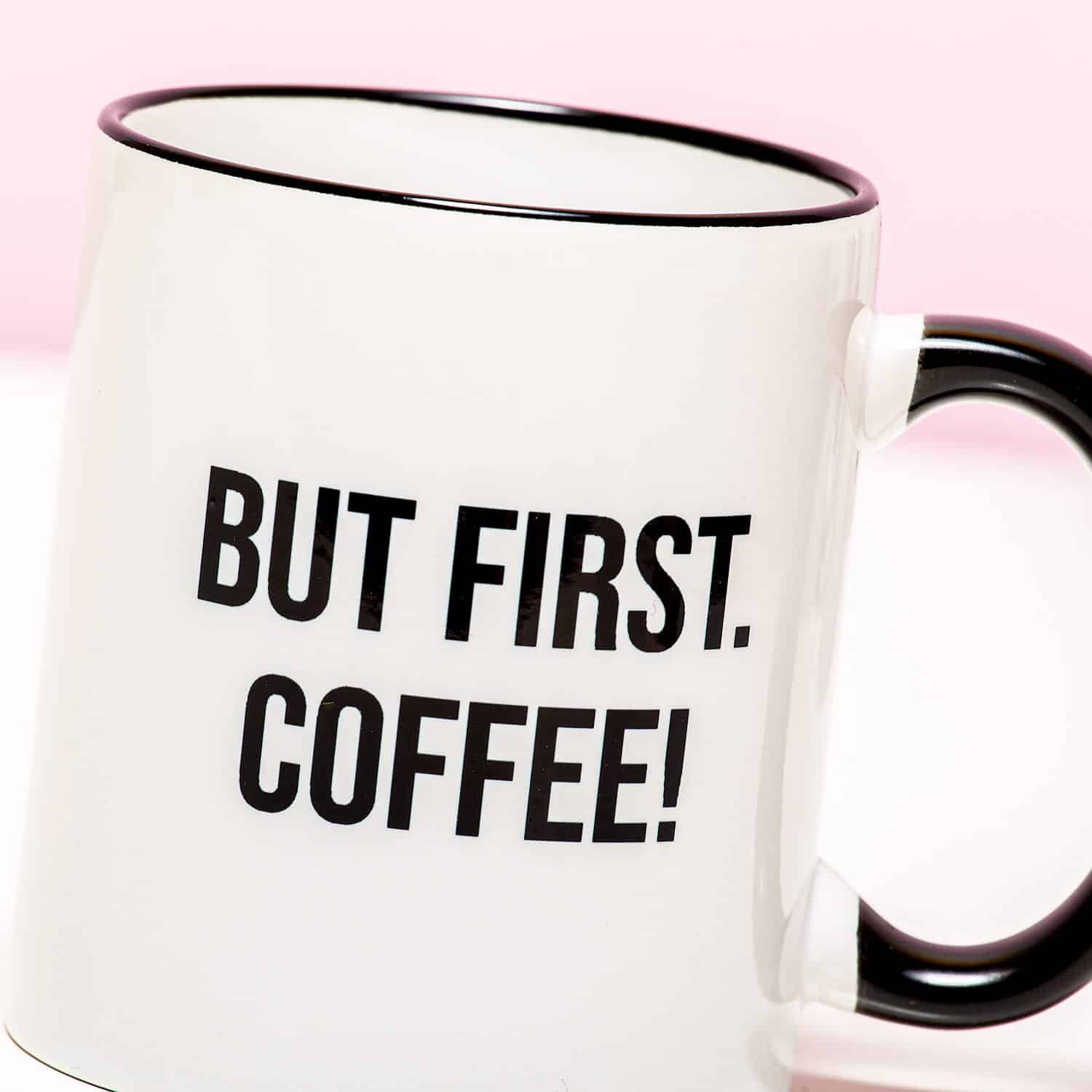 - Mit dem Text: But First. Coffee!