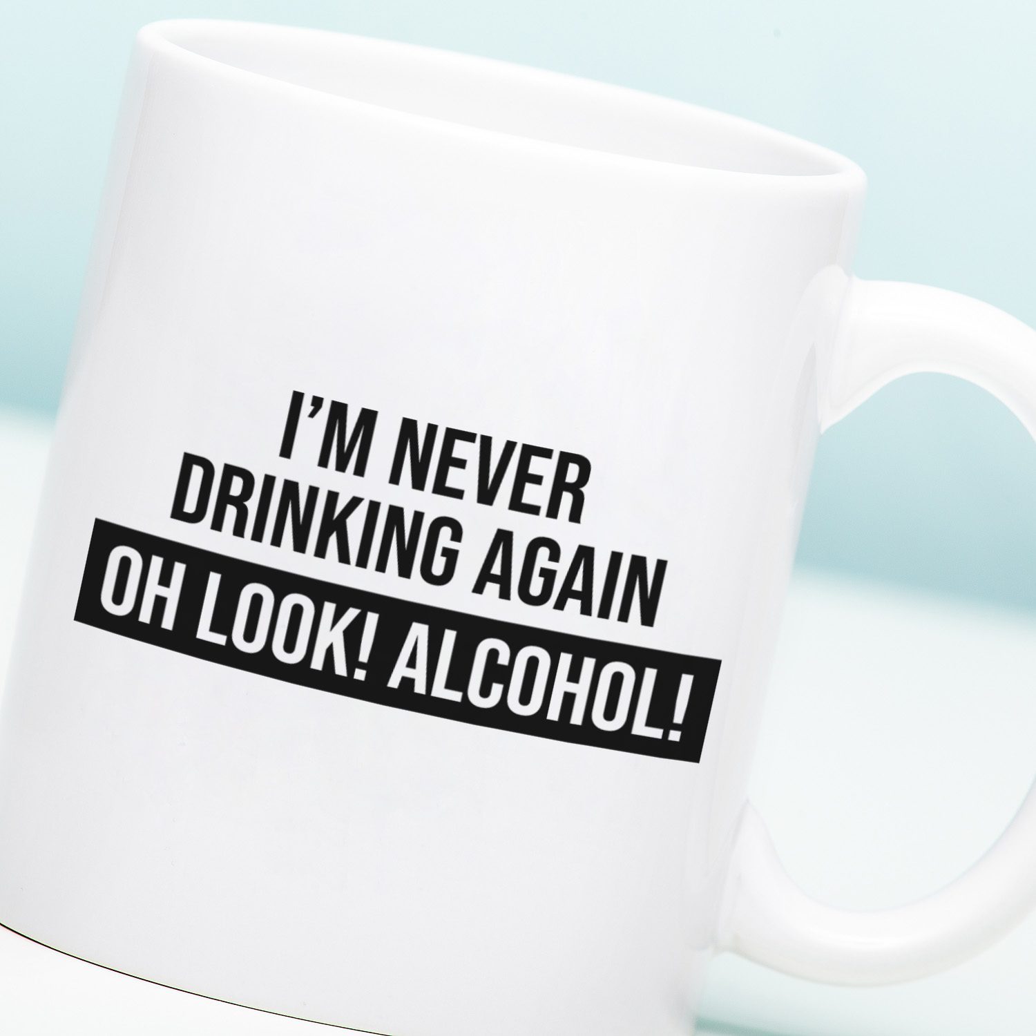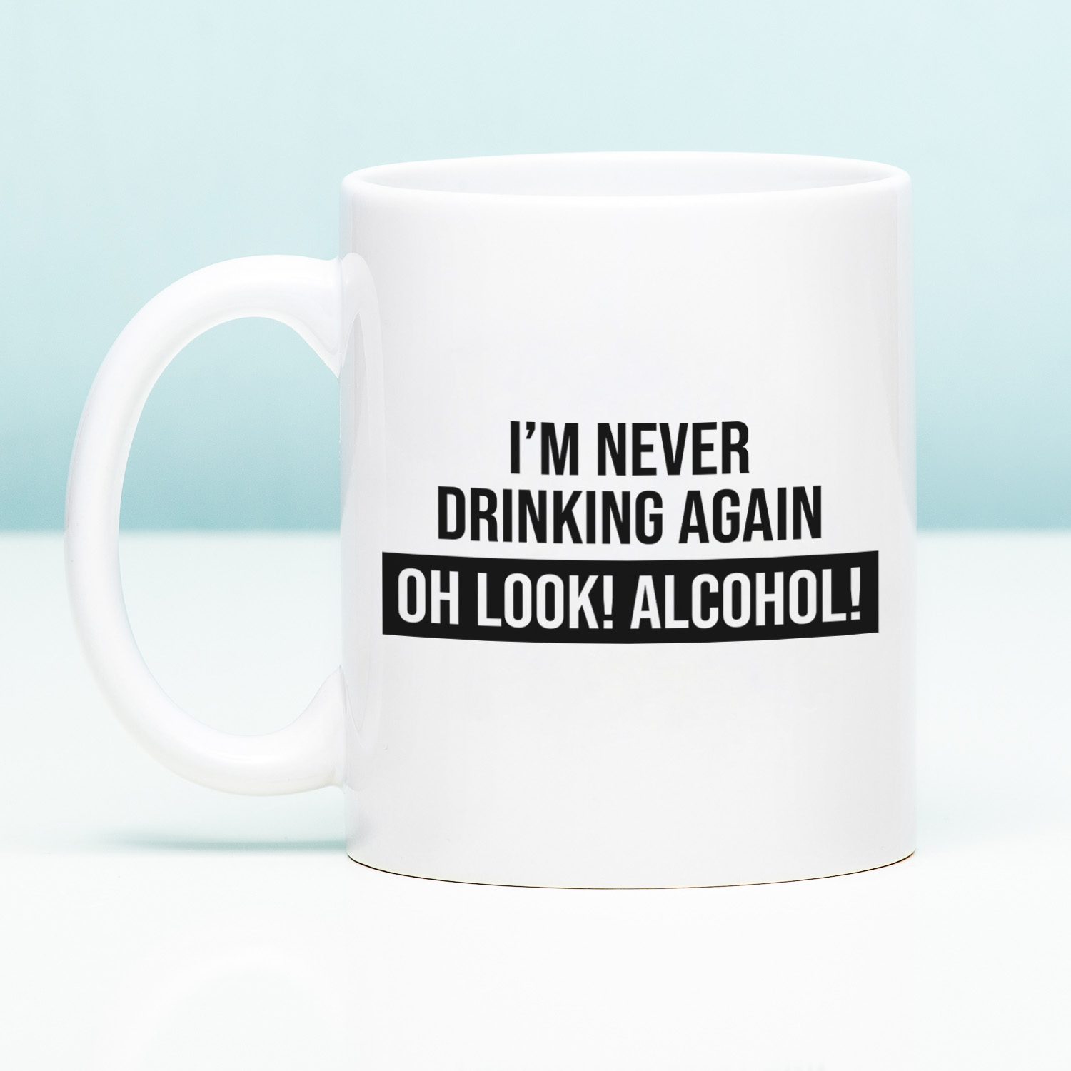 Du bist dir ganz sicher, wenn du mit pochendem Kopf und einer Zunge wie Sandpapier aufwachst: Du trinkst nie wieder. Aber nach einem fettigen Snack geht es dir schnell besser, und hilft ein Bier nicht gegen einen Kater? Die Tasse I’m Never Drinking Again ist genau für dich entworfen. Diese witzige Tasse trägt den Text: I’m never drinking again. Oh look! Alcohol!. Sie darf in keinem Studentenwohnheim fehlen.