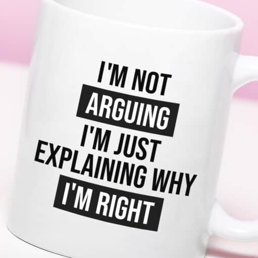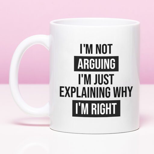 Stur? Eigensinnig? Streitsรผchtig? Keineswegs! Du willst einfach erklรคren, warum du recht hast. Die Tasse I’m Not Arguing ist fรผr alle, die oft den Vorwurf bekommen, sie seien bissig und wรผrden leicht Streit suchen. Der Text auf der Tasse erklรคrt es genau: Iโm not arguing, Iโm just explaining why Iโm right. Sprich: Ich streite nicht, ich erklรคre nur, warum ich recht habe.