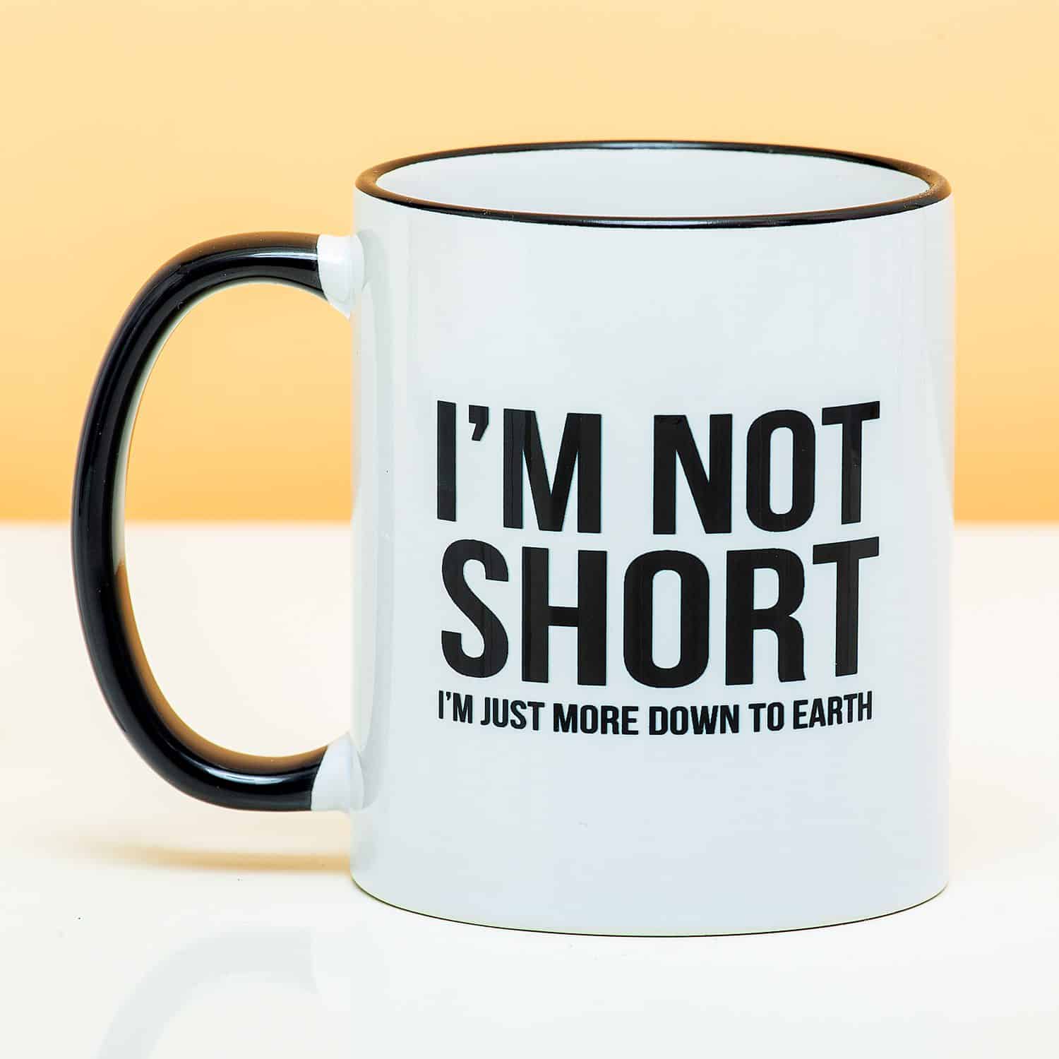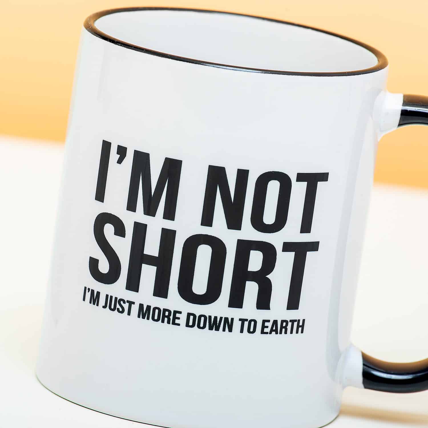 Das Seltsame daran, nicht so groรŸ zu sein, ist, dass die Leute manchmal denken, dass Sie selbst nicht wissen, dass Sie im Durchschnitt etwas kleiner sind als andere. Die Tasse I’m Not Short ist fรผr alle, die die Kommentare jetzt kennen. Auf der Tasse steht der Text: Iโ€™m not short. Iโ€™m just more down to earth.Sehen Sie, ob diese Tasse sie zum Schweigen bringt.