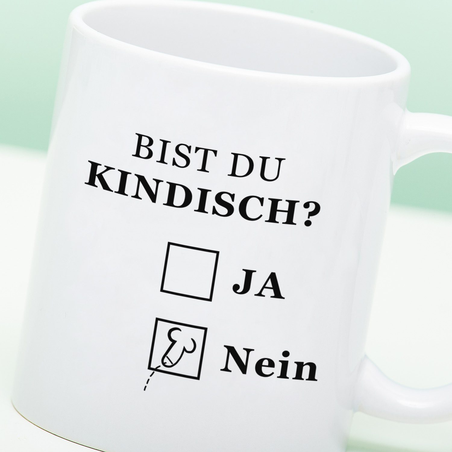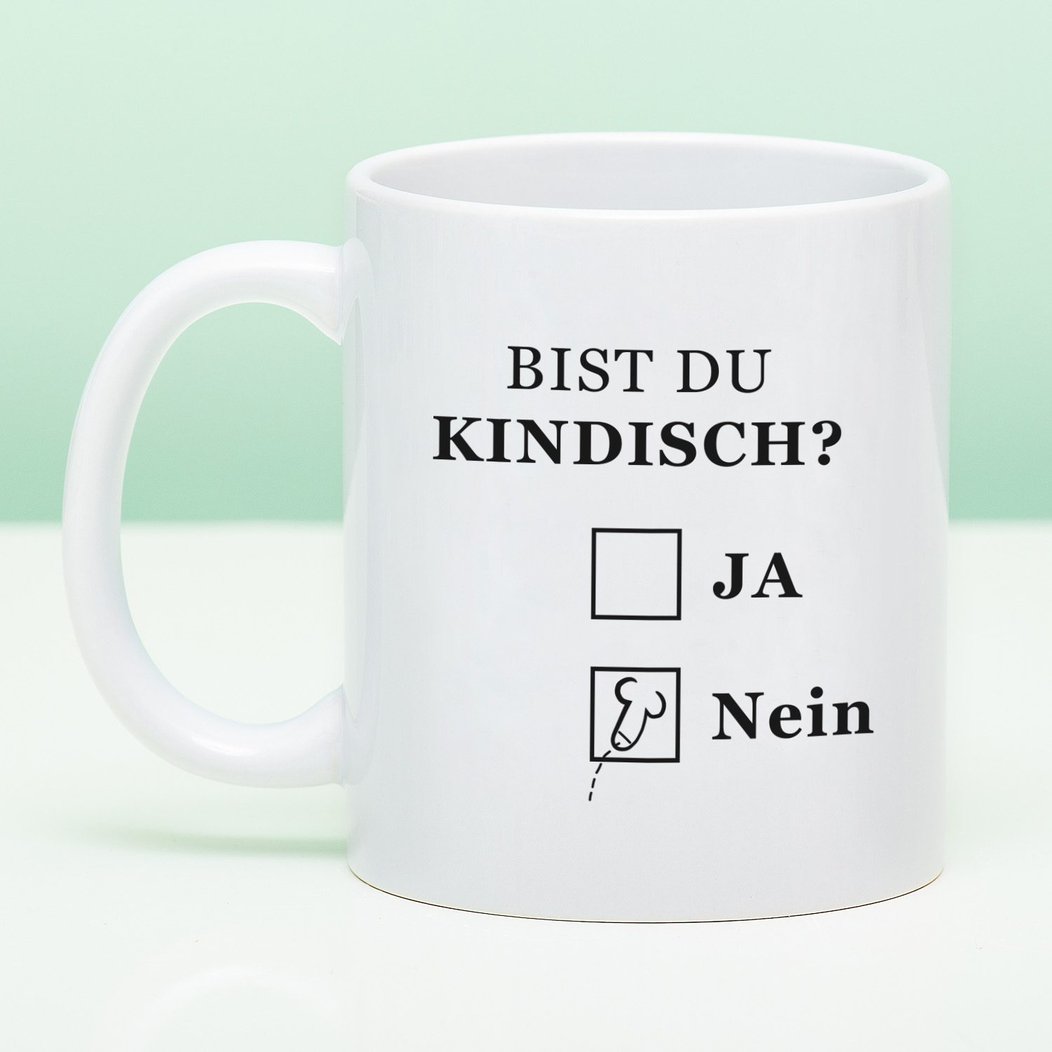 Frage den Spaรvogel, ob er kindisch ist, und die Wahrscheinlichkeit ist groร, dass er antworten wird, er sei es nicht. Die Tasse Kindisch sieht das allerdings anders. Auf dieser Tasse steht die Frage Bist du kindisch? und ein Kรคstchen mit ja und nein zum Ankreuzen. Im Kรคstchen bei nein ist ein pinkelnder Penis gezeichnet. Ein echtes Stรผck Humor fรผr den Witzbold bei der Arbeit oder in deiner Freundengruppe.