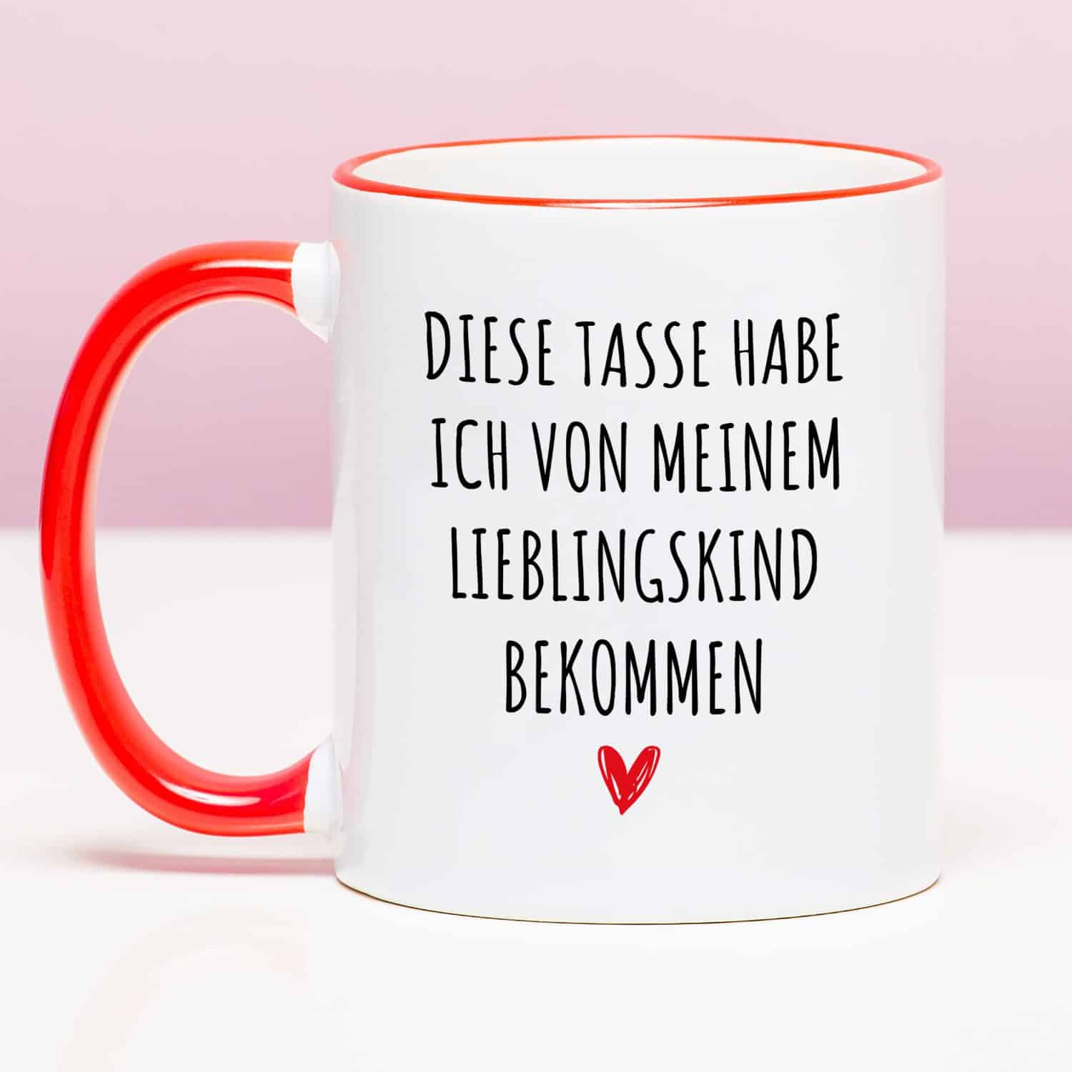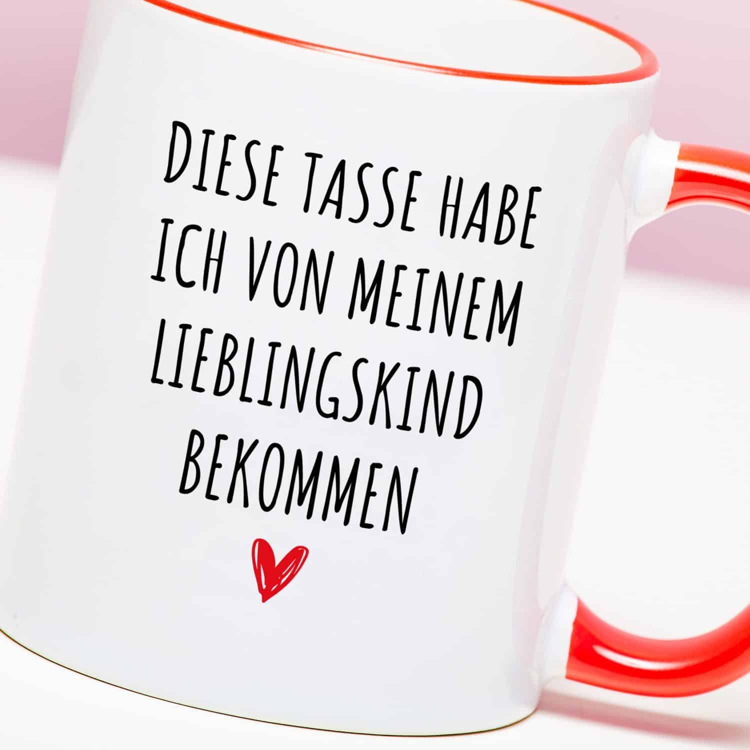 Hey, Mama! Du hast die liebsten Kinder. Und heimlich bin ich dein Favorit, das weiร ich. Speziell, um deine Mutter jeden Tag daran zu erinnern, gibt es die Tasse Meinem Lieblingskind. Diese Tasse ist groรartig, um sie am Muttertag oder einfach so, weil du sie liebst, zu schenken. Darauf steht der Text: Diese Tasse habe ich von meinem Lieblingskind bekommen. Passt perfekt zu euch, oder?