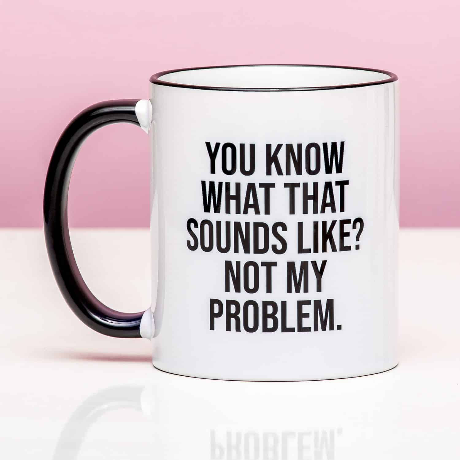 Jeder kennt diesen einen Kollegen, der ausfรผhrlich รผber seine Beziehungsprobleme sprechen mรถchte oder versucht, seine Verantwortung auf dich abzuwรคlzen. Die Tasse Not My Problem macht damit schnell kurzen Prozess. Auf der Tasse steht der Text: “You Know What That Sounds Like? Not My Problem.” Viel deutlicher geht es nicht. Die Kaffeetasse ist spรผlmaschinenfest, was sie besonders praktisch macht.