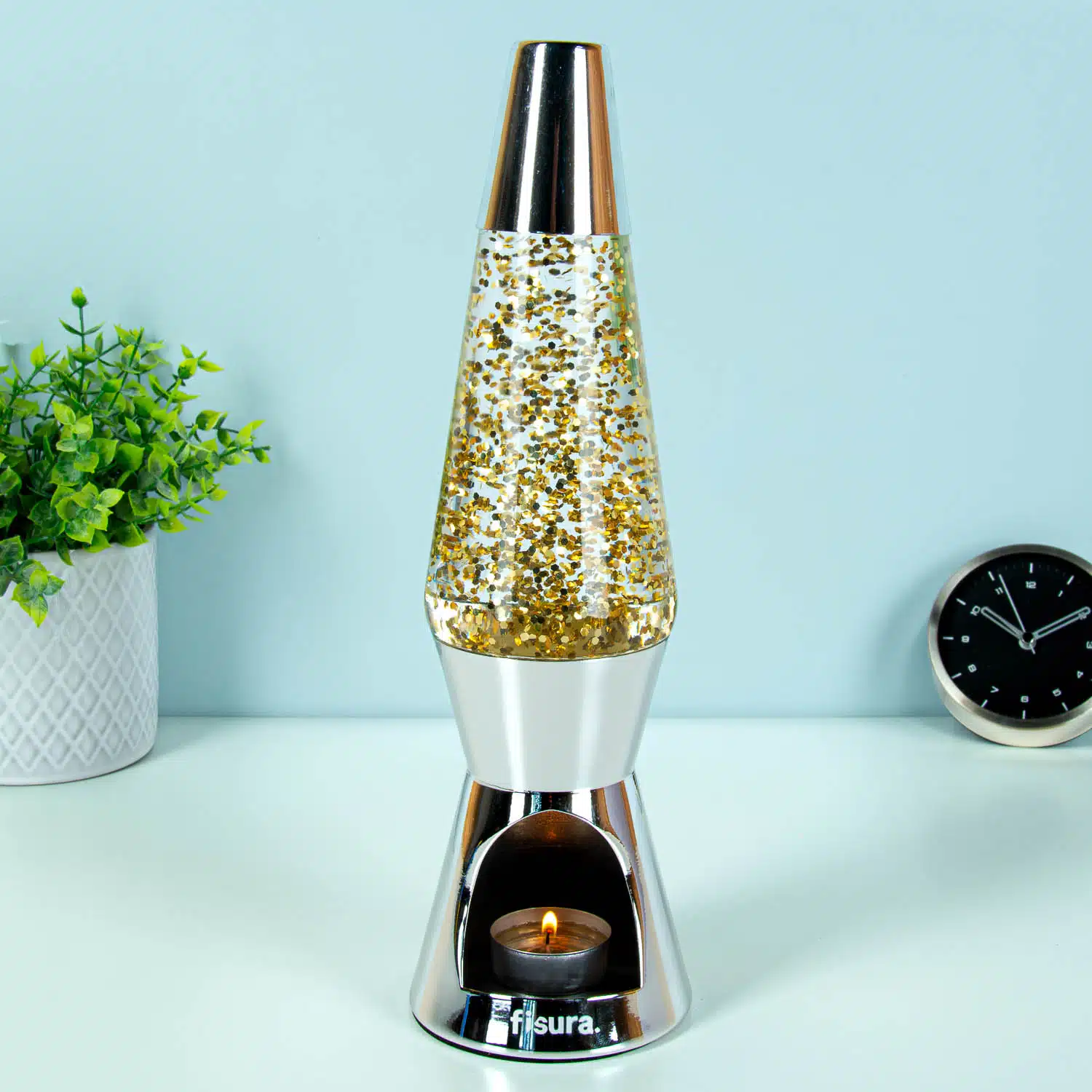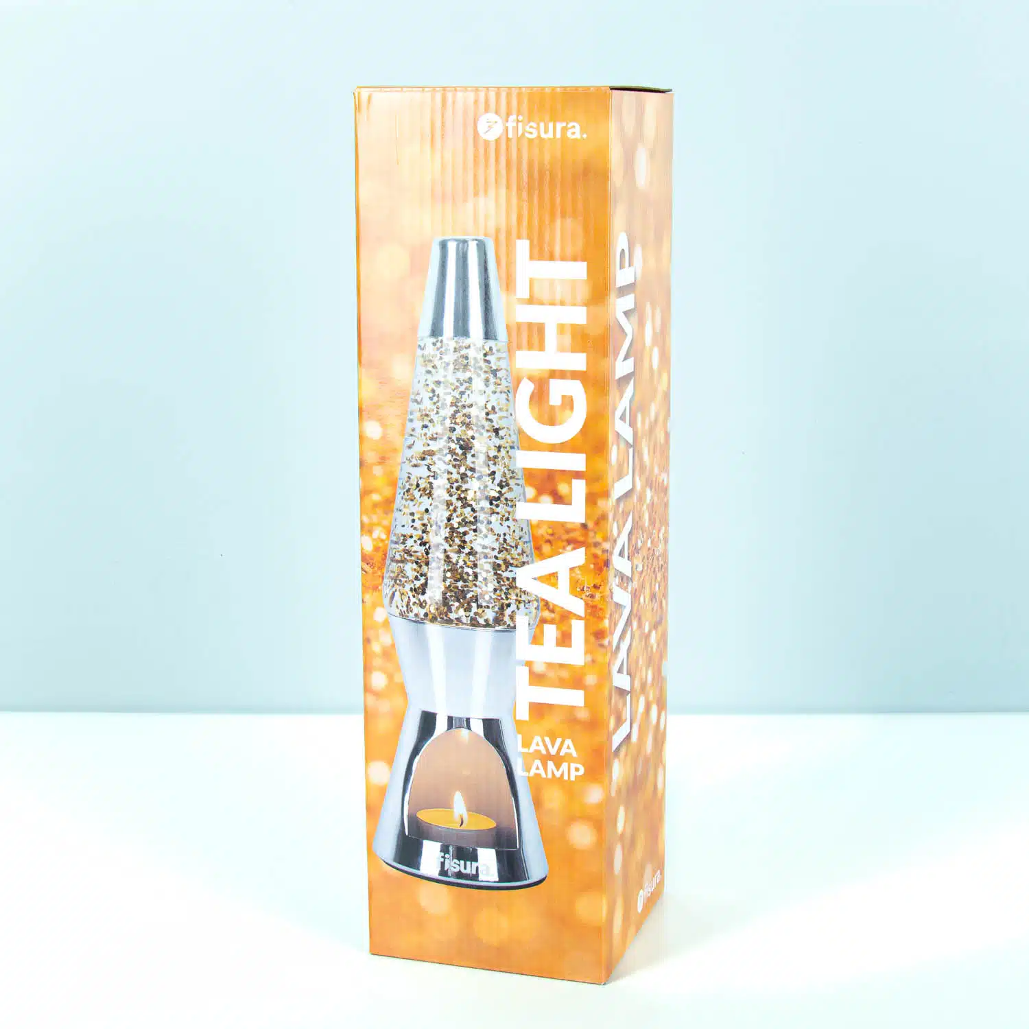 Teelicht-Lavalampe mit goldenem Glitzer von Fisura