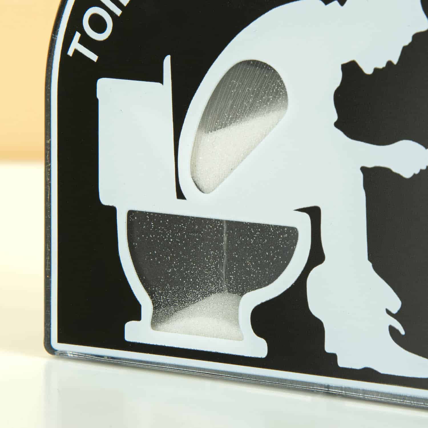 Vermisst du regelmรครig deinen Freund und findest ihn dann nach einer Stunde auf der Toilette wieder? Mit der Toilet Timer ist damit Schluss! Diese humorvolle Sanduhr zeigt einen Mann auf der Toilette. Das Sand rieselt in etwa fรผnf Minuten von seinem Bauch in die Toilette. Ist die Zeit abgelaufen, wird es hรถchste Zeit, die Toilette zu verlassen. Diese witzige Timer ist ein originelles und lustiges Geschenk fรผr Mitbewohner.