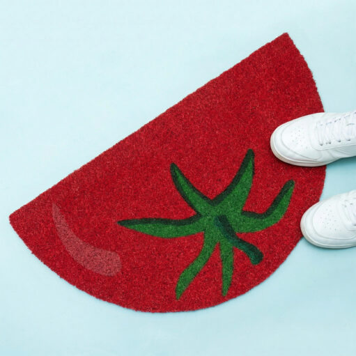 Warum eine langweilige Fußmatte, wenn du auch eine Tomate haben kannst? Die Tomaten-Fußmatte von Fisura hat die Form einer halben Tomate und ist aus Kokosfasern mit rutschfester Unterseite. Fröhlich, originell und ein Hingucker für alle, die bei dir ankommen. Toll für die Küche oder die Eingangstür.