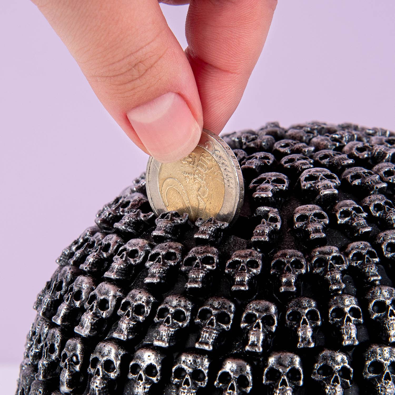 Willst du verhindern, dass dein kleiner Bruder dein Erspartes klaut? Die Totenkopf-Spardose mit Schloss ist die perfekte Lรถsung, um Langfinger im Haushalt abzuschrecken. Diese gruselige Spardose hat die Form eines Totenkopfes, verziert mit Dutzenden kleiner Schรคdel. Und das Beste: Sie ist mit einem Schloss ausgestattet. Verstecke den Schlรผssel gut, dann kommt niemand an dein Geld!