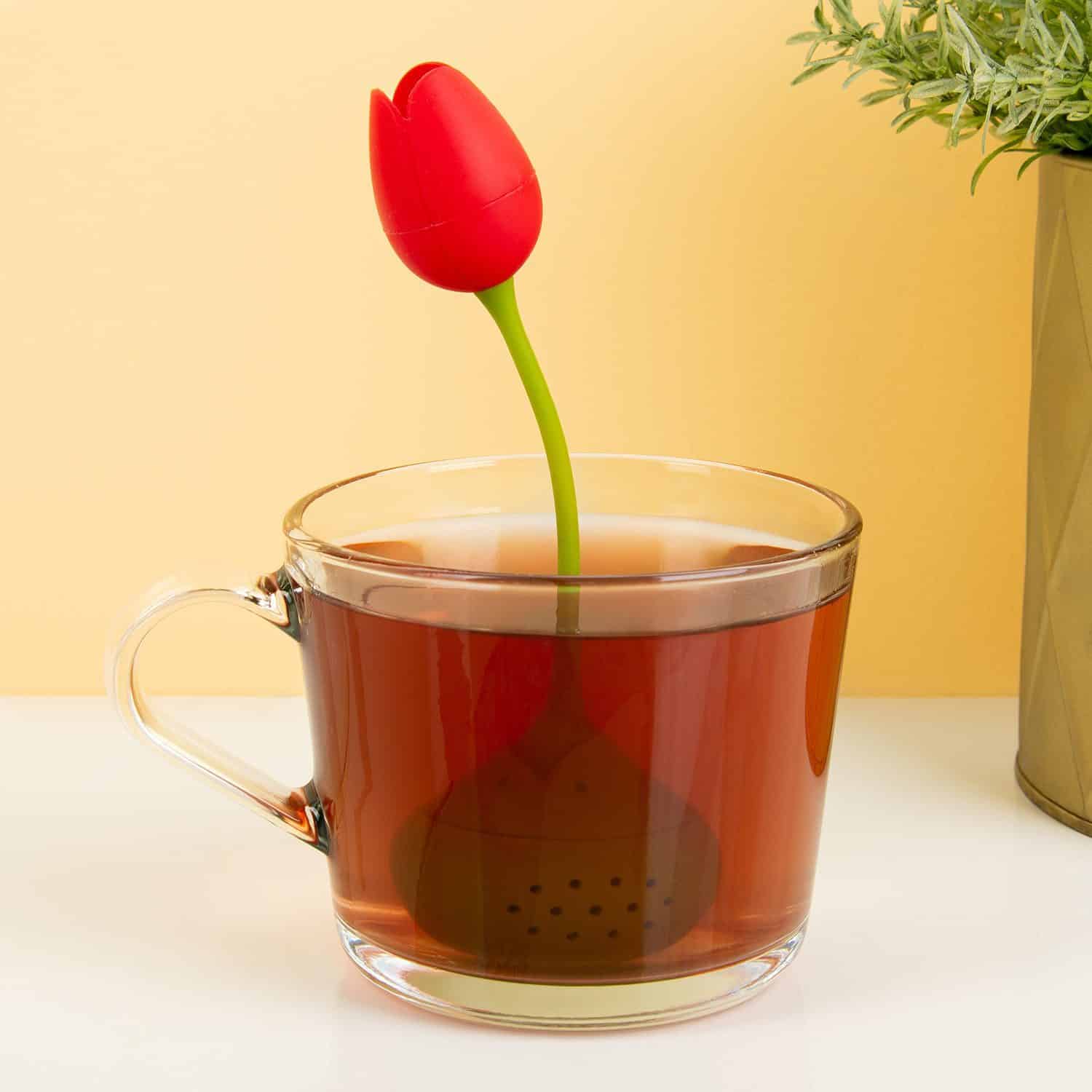 Wenn du diese Tulpe in dein Teeglas pflanzt, passiert etwas ganz Besonderes: dein Lieblingstee entsteht. Die Tulpe ist natรผrlich nicht echt, sondern ein Tulpen-Tee-Ei. Du fรผllst das Tee-Ei von Ototo mit deiner liebsten losen Teesorte und stellst es in dein Glas mit heiรem Wasser. Nach ein paar Minuten ist dein Getrรคnk fertig und du hebst das Tee-Ei am Kรถpfchen aus deinem Glas. Dieses Tee-Ei in der Form einer Tulpe ist einfach zu befรผllen und zu reinigen. Es ist aus Silikon hergestellt.