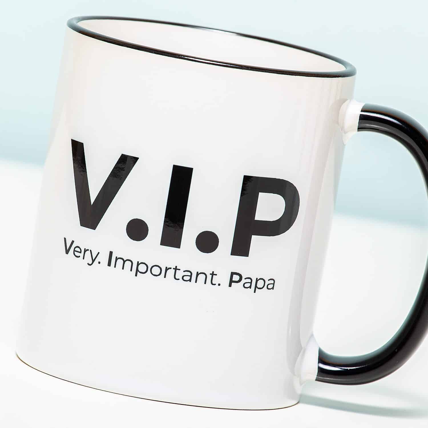 Hey Papa! Du bist der V.I.P. in meinem Leben. Das ist die Botschaft der Tasse Very Important Papa. Mit dieser Tasse, die du deinem Vater zum Vatertag, zu seinem Geburtstag oder einfach so schenkst, zeigst du ihm, wie wichtig er dir wirklich ist. Und dass du stolz auf ihn bist. Wetten, dass dieses Geschenk ihn zum Strahlen bringt und er jedem erzรคhlen wird, dass er diese Tasse von dir bekommen hat?