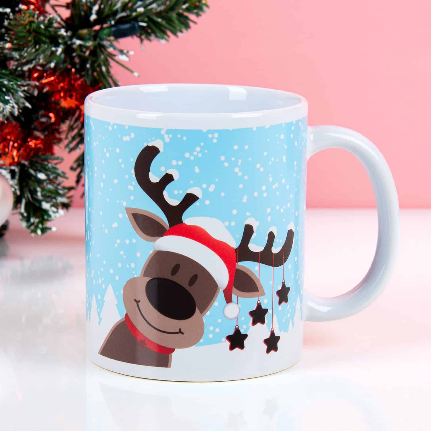 Für alle, die es kaum erwarten können, bis Weihnachten da ist, haben wir etwas Besonderes: die Wärmeempfindliche Rentier-Weihnachtstasse. Diese niedliche Tasse passt perfekt in die gemütliche winterliche Atmosphäre, nach der du suchst. Die Tasse hat einen hellblauen Hintergrund mit Schnee und einem fröhlichen Rentier mit Weihnachtsmütze und einer schwarzen Nase. Gießt du ein heißes Getränk in die Tasse, verwandelt sich Rudolphs Nase von schwarz in rot.