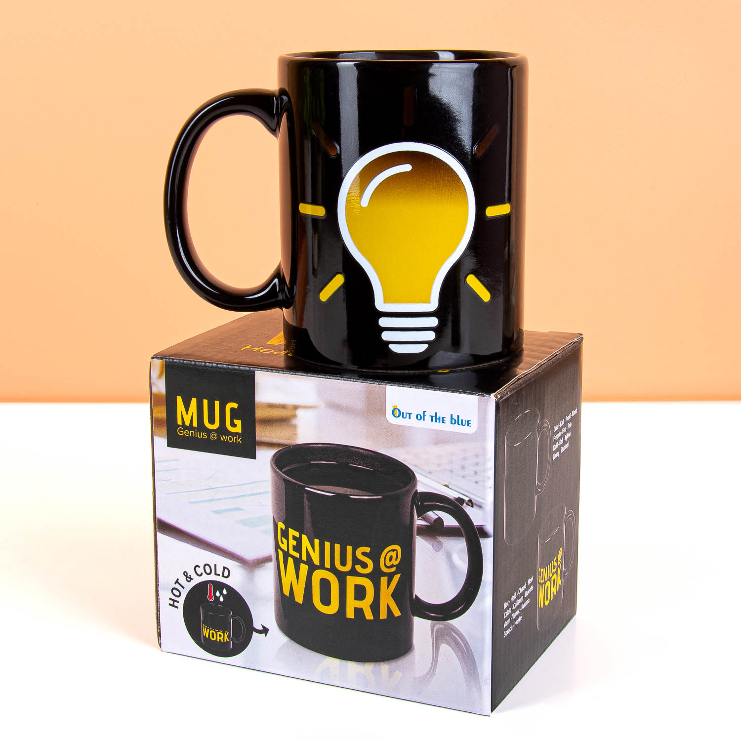 Gieß heißen Kaffee oder Tee in die wärmeempfindliche Tasse Genius @ Work und schau, wie die gelbe Lampe aufleuchtet. Als würde buchstäblich ein Lichtchen angehen. Denn ein bisschen Genialität braucht manchmal einfach einen kleinen Anstoß. Die Tasse reagiert auf Wärme und zeigt, dass dein Gehirn auf Hochtouren läuft. Achtung: nicht für Mikrowelle und Spülmaschine geeignet.