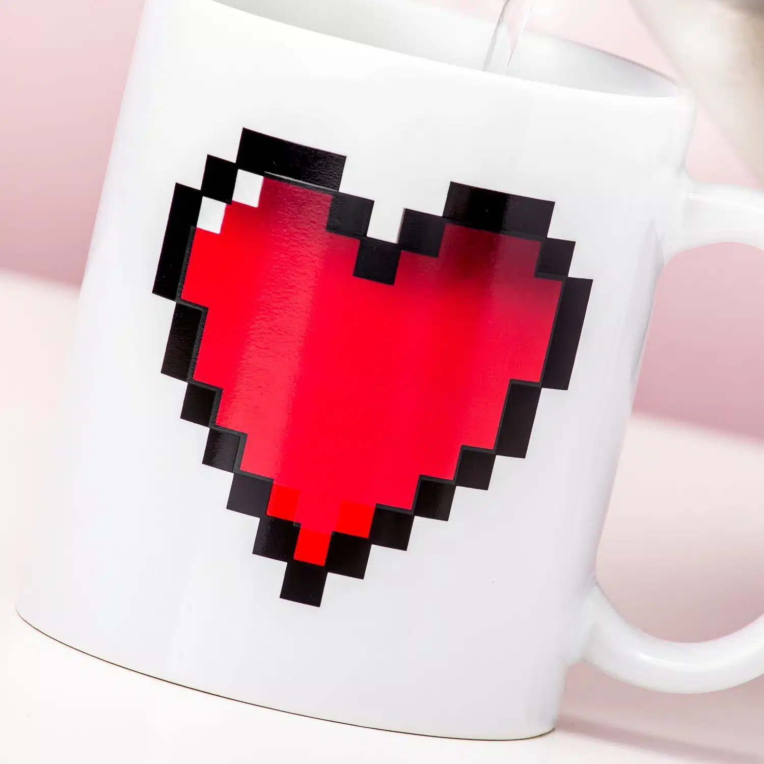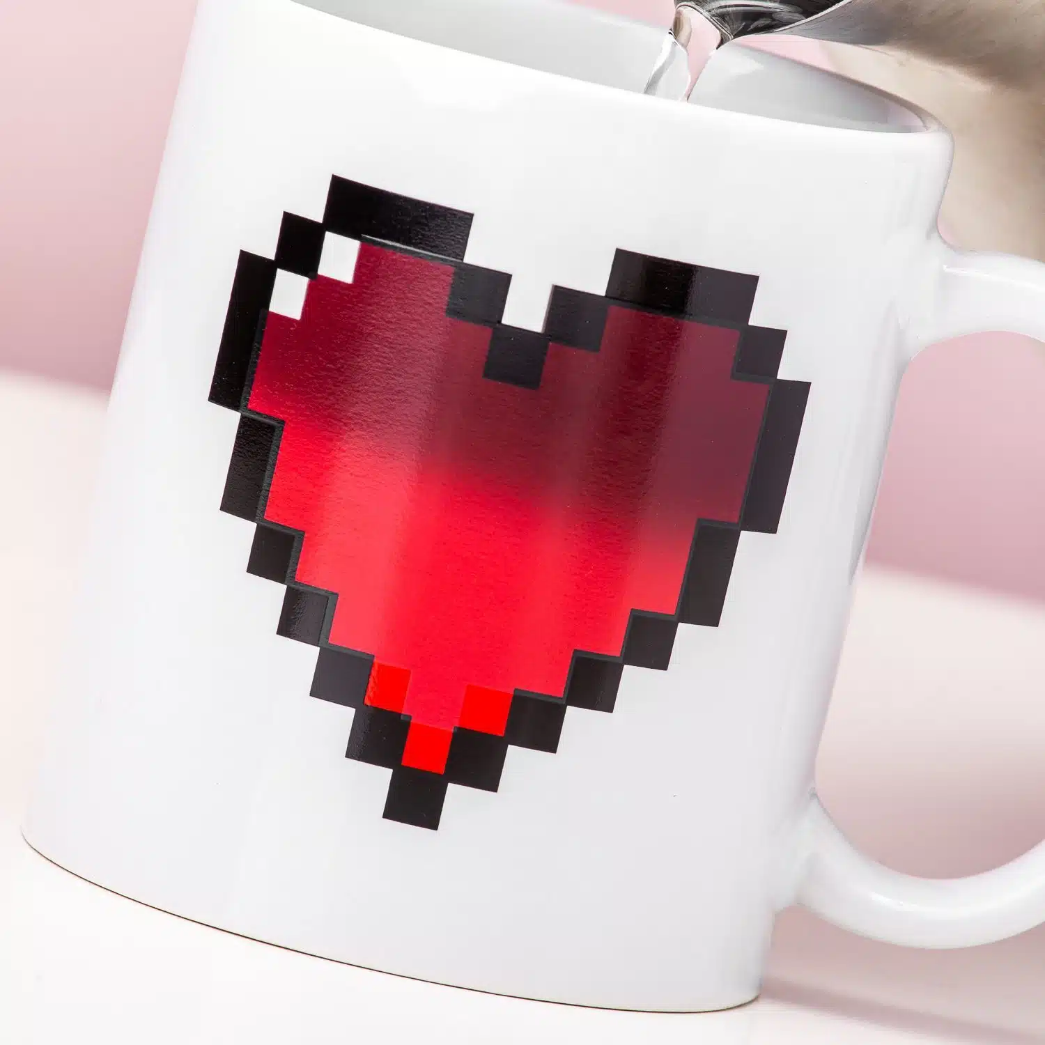 - Das Herz ändert seine Farbe, sobald ein warmes Getränk in der Tasse ist