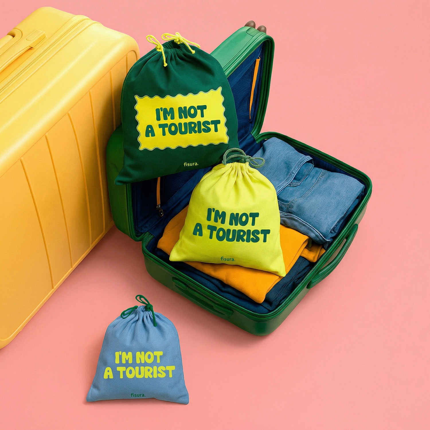Wäschebeutel I’m Not a Tourist von Fisura (3er-Set)