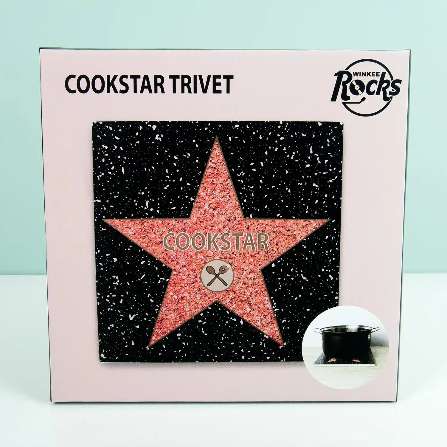 Ist deine Freundin eine groรartige Kรถchin? รberrasche sie mit dem Walk of Fame Topflappen von Winkee. Dieser ist eine Art Auszeichnung und Untersetzer in einem. Der Topflappen sieht aus wie ein Stern, den man auch auf dem Walk of Fame in Hollywood findet. Auf dem Stern steht das Wort “Cookstar” mit Kรผchenutensilien darunter. Ein praktisches Geschenk, denn der Topflappen schรผtzt deinen Tisch vor der Hitze von Pfannen oder Auflaufformen.