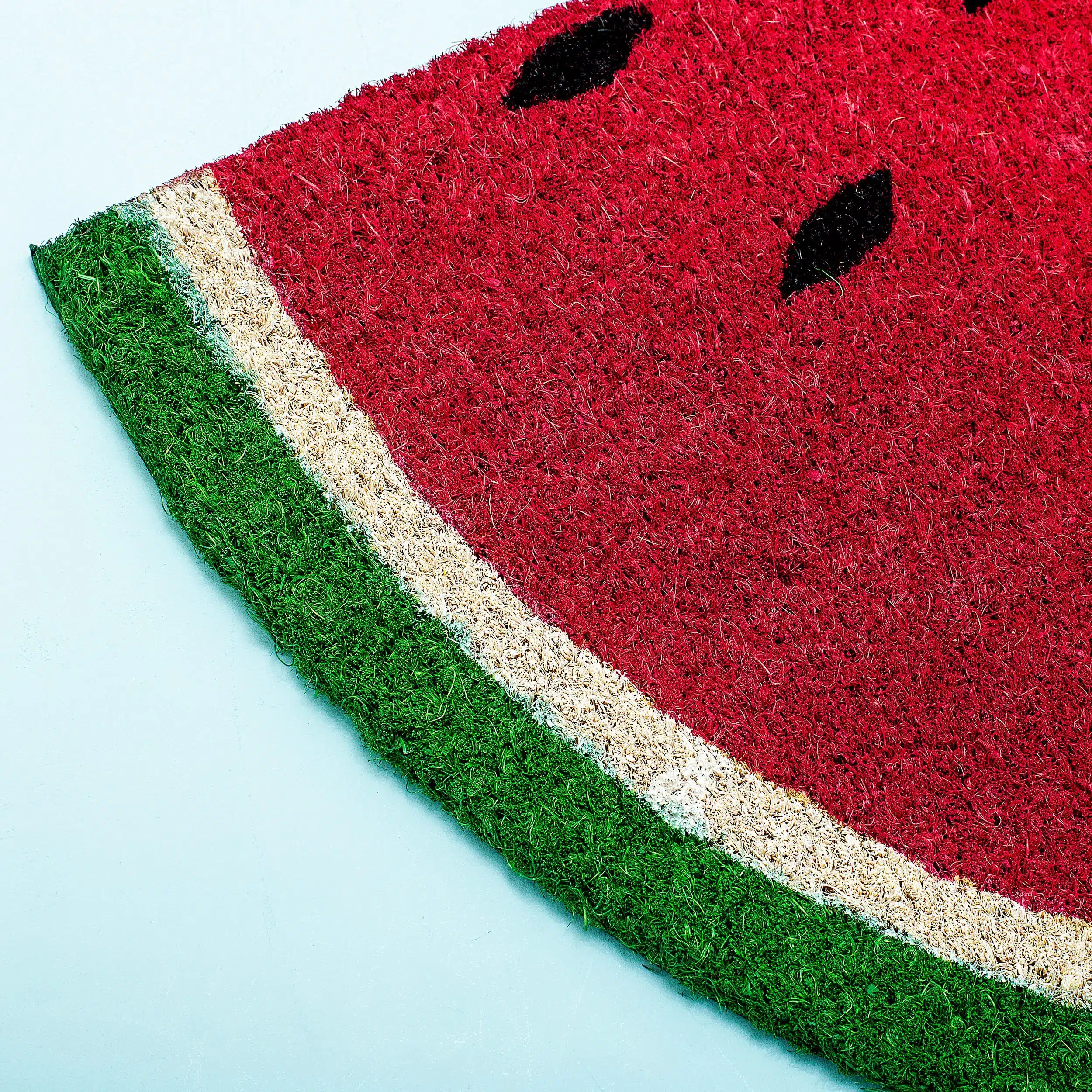 Nichts schmeckt besser als ein saftiges Stück Wassermelone an einem heißen Sommertag. Aber auch an anderen Tagen kann Wassermelone schön sein. Hilfreich sogar. Die Fußmatte Watermelon von Fisura beispielsweise sorgt dafür, dass Ihr Flur sauber und trocken bleibt.Diese fröhliche Fußmatte sieht aus wie ein Stück Melone, besteht aber tatsächlich aus umweltfreundlichen Kokosfasern.
