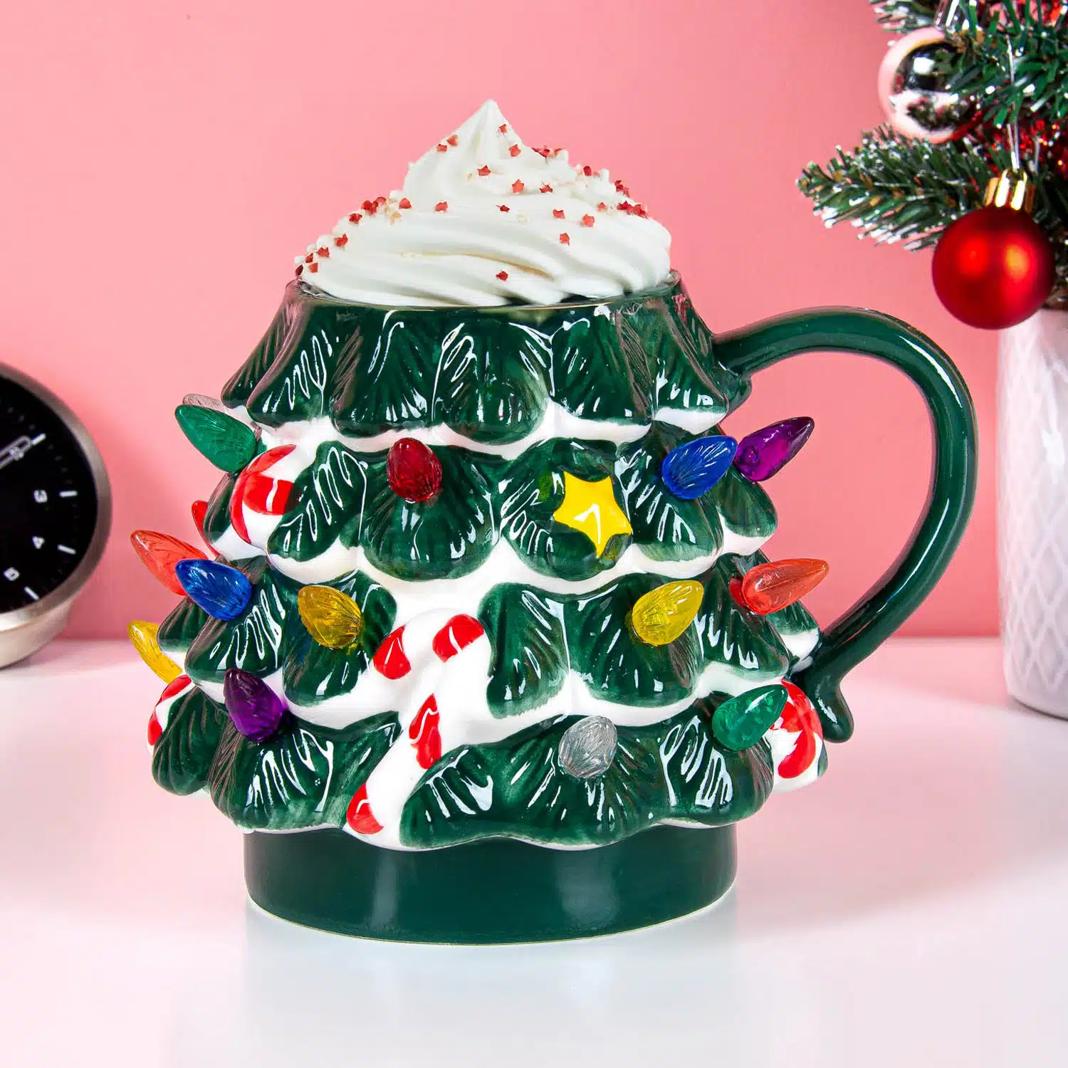 Kaffee? Tee? Glühwein? Egal, was du einschenkst – die Weihnachtsbaum-Tasse mit LED-Beleuchtung von MikaMax macht jedes Getränk zu einem Fest. Diese Tasse sieht aus wie ein fröhlicher Weihnachtsbaum, komplett mit Lichtern, die wirklich leuchten. Ideal für alle, die ihrem Getränk ein Extra an Weihnachtsstimmung verleihen wollen. Perfekt für unter dem Baum, die lustige Weihnachtsfeier oder einfach als Scherz für den Kollegen, der schon im September Last Christmas summt.
