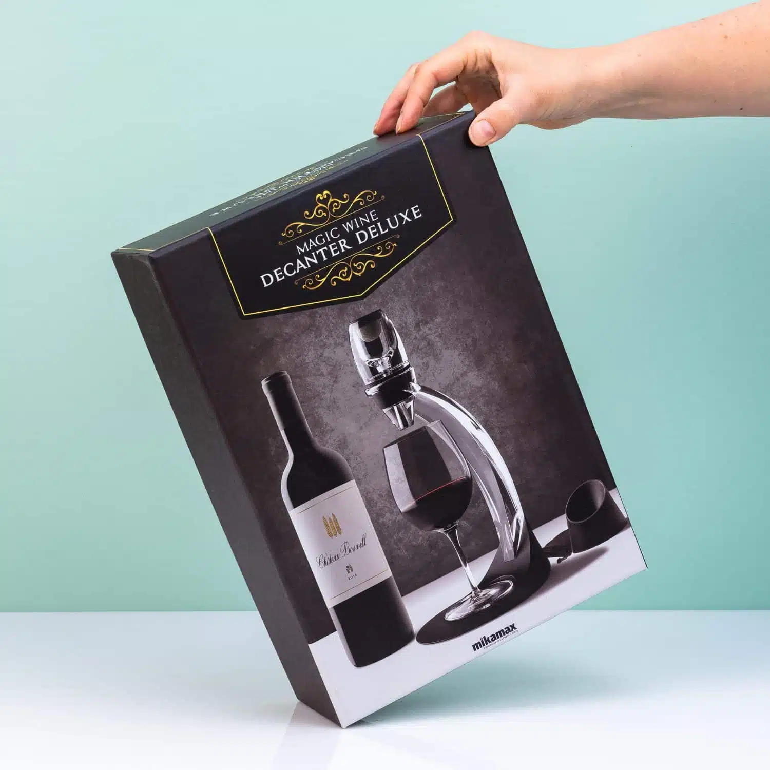 Holt ihr gerne alles aus dem Leben heraus? Mit dem Wein Dekantierer von MikaMax gilt das auch fรผr euren Wein! Durch die Verwendung eines Dekantierers kommt der Wein mit Sauerstoff in Kontakt, was ihm erlaubt zu atmen. Dadurch wird der Wein weicher und reicher im Geschmack, und die Aromen kommen besser zur Geltung. Der Wein Dekantierer kann รผberall verwendet werden, denn sein kompaktes Format macht ihn leicht transportierbar. So kรถnnt ihr immer und รผberall das beste Glas Wein genieรen. Die Deluxe-Variante wird komplett mit einem Stรคnder geliefert, auf den ihr euer Weinglas stellen kรถnnt.