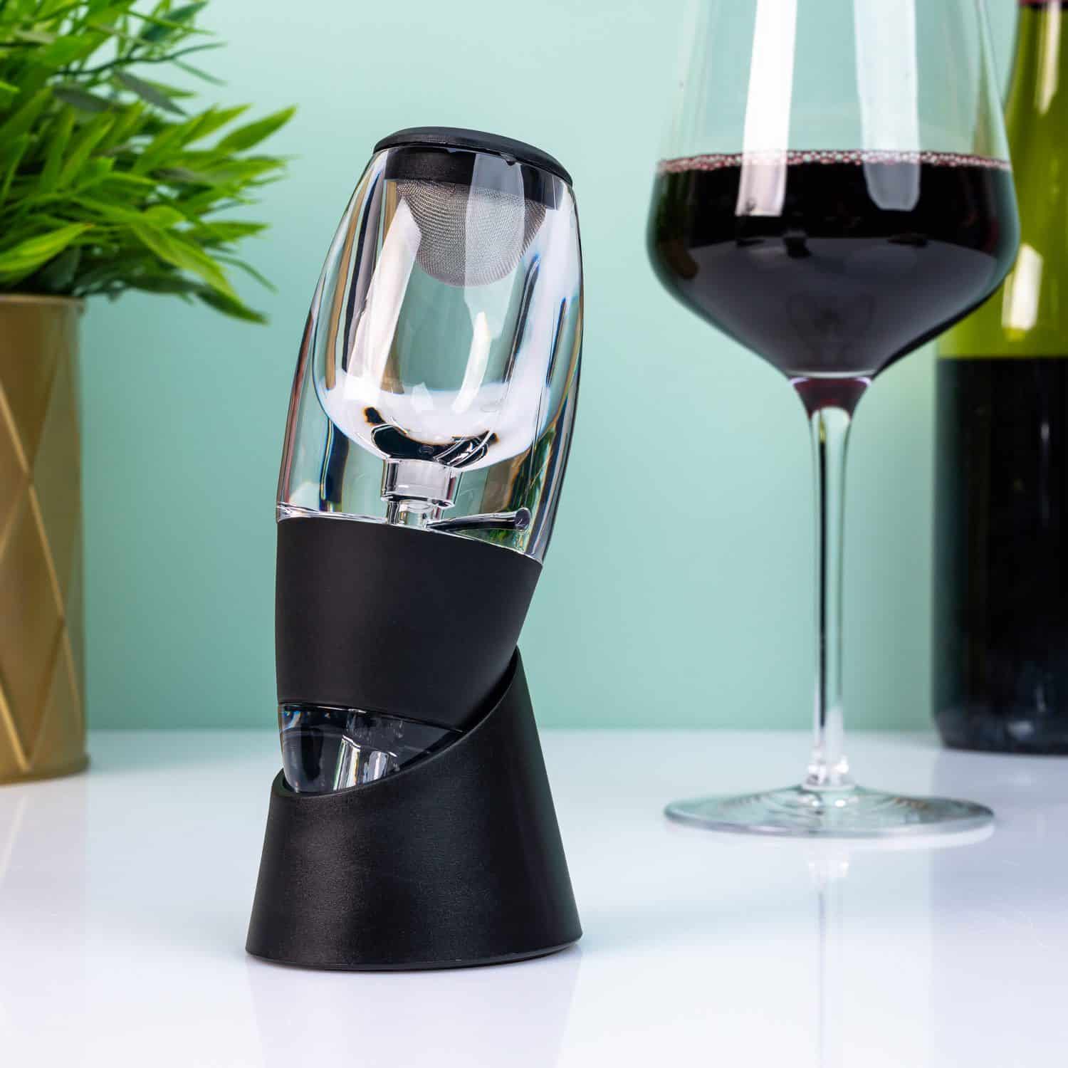 Holt ihr gerne alles aus dem Leben heraus? Mit dem Wein Dekantierer von MikaMax gilt das auch für euren Wein! Durch die Verwendung eines Dekantierers kommt der Wein mit Sauerstoff in Kontakt, was ihm erlaubt zu atmen. Dadurch wird der Wein weicher und reicher im Geschmack, und die Aromen kommen besser zur Geltung. Der Wein Dekantierer kann überall verwendet werden, denn sein kompaktes Format macht ihn leicht transportierbar. So könnt ihr immer und überall das beste Glas Wein genießen. Die Deluxe-Variante wird komplett mit einem Ständer geliefert, auf den ihr euer Weinglas stellen könnt.