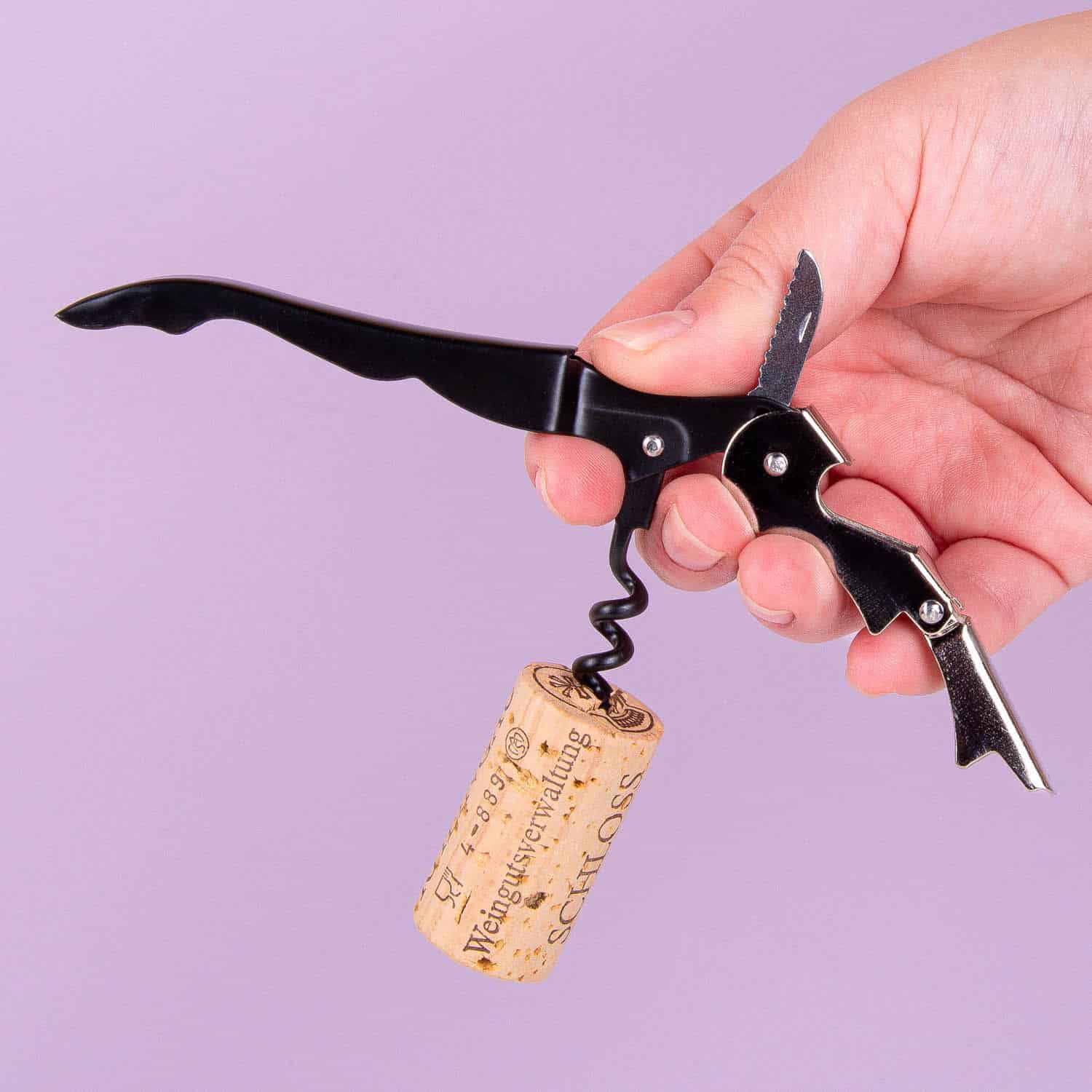 - Inklusive Flaschenรถffner, Korkenzieher, Ausgieรer, Stopfen, Folienschneider und Tropfring