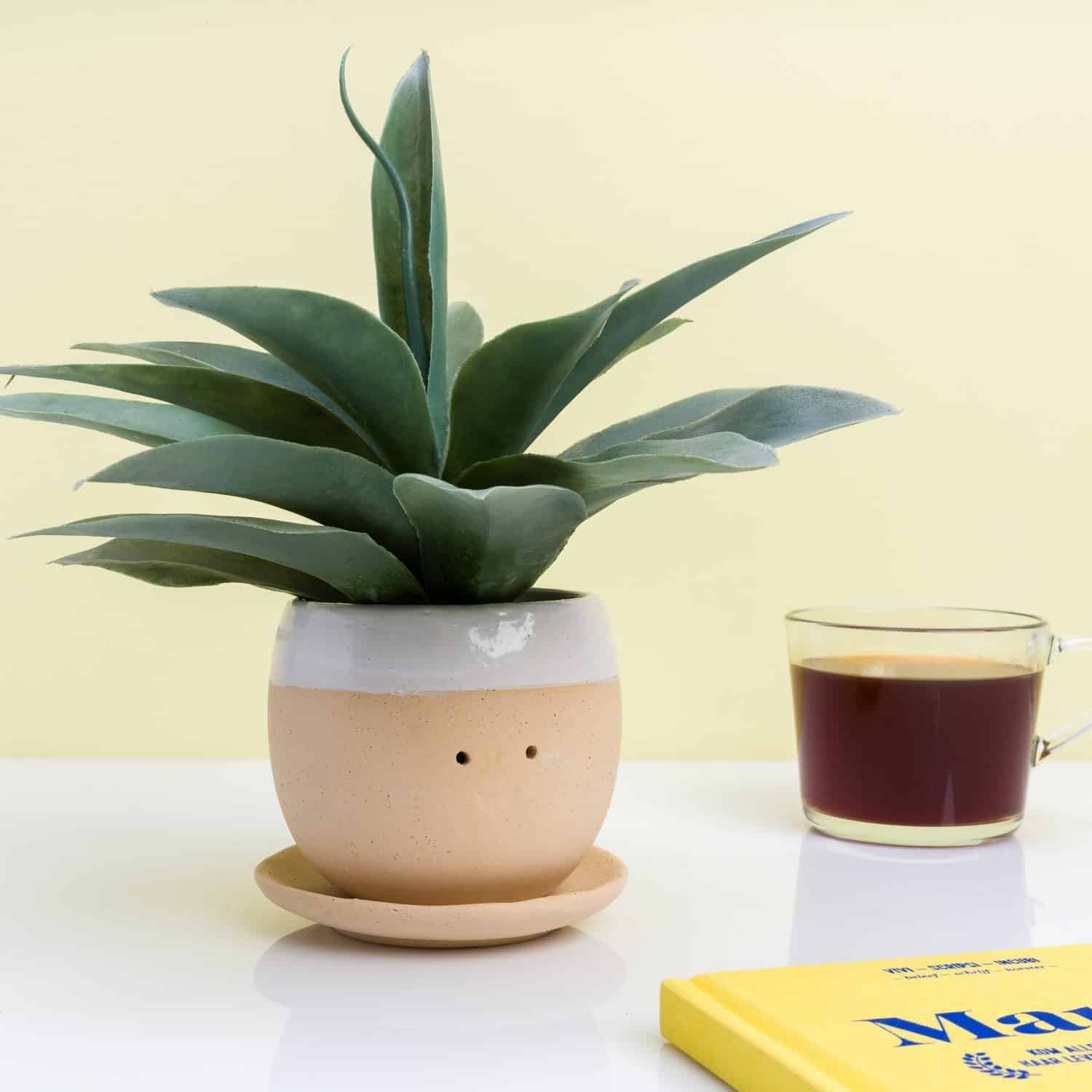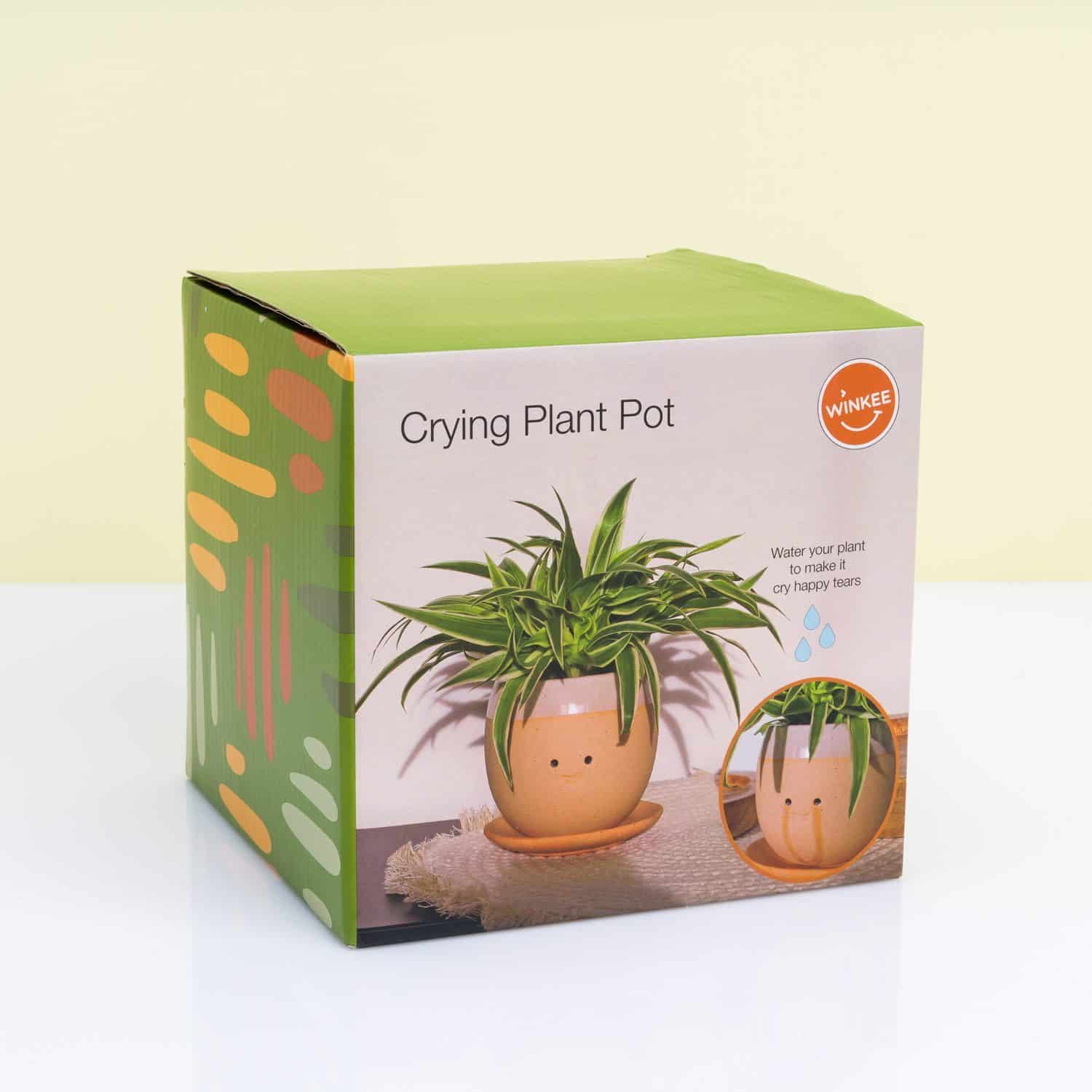 Weinen Sie manchmal, wenn Sie sehr glücklich sind? Winkees weinender Blumentopf auch! Dieser originelle Blumentopf weint Freudentränen, wenn man ihn gießt. Das ist für ihn sofort eine praktische Möglichkeit, das überschüssige Wasser loszuwerden. Der Blumentopf hat ein fröhliches Gesicht und mit einer schönen Pflanze können Sie auch seine Frisur bestimmen. Wählen Sie zum Beispiel fröhliche grüne Stacheln mit einem Aglaonema oder einer Frauenzunge.