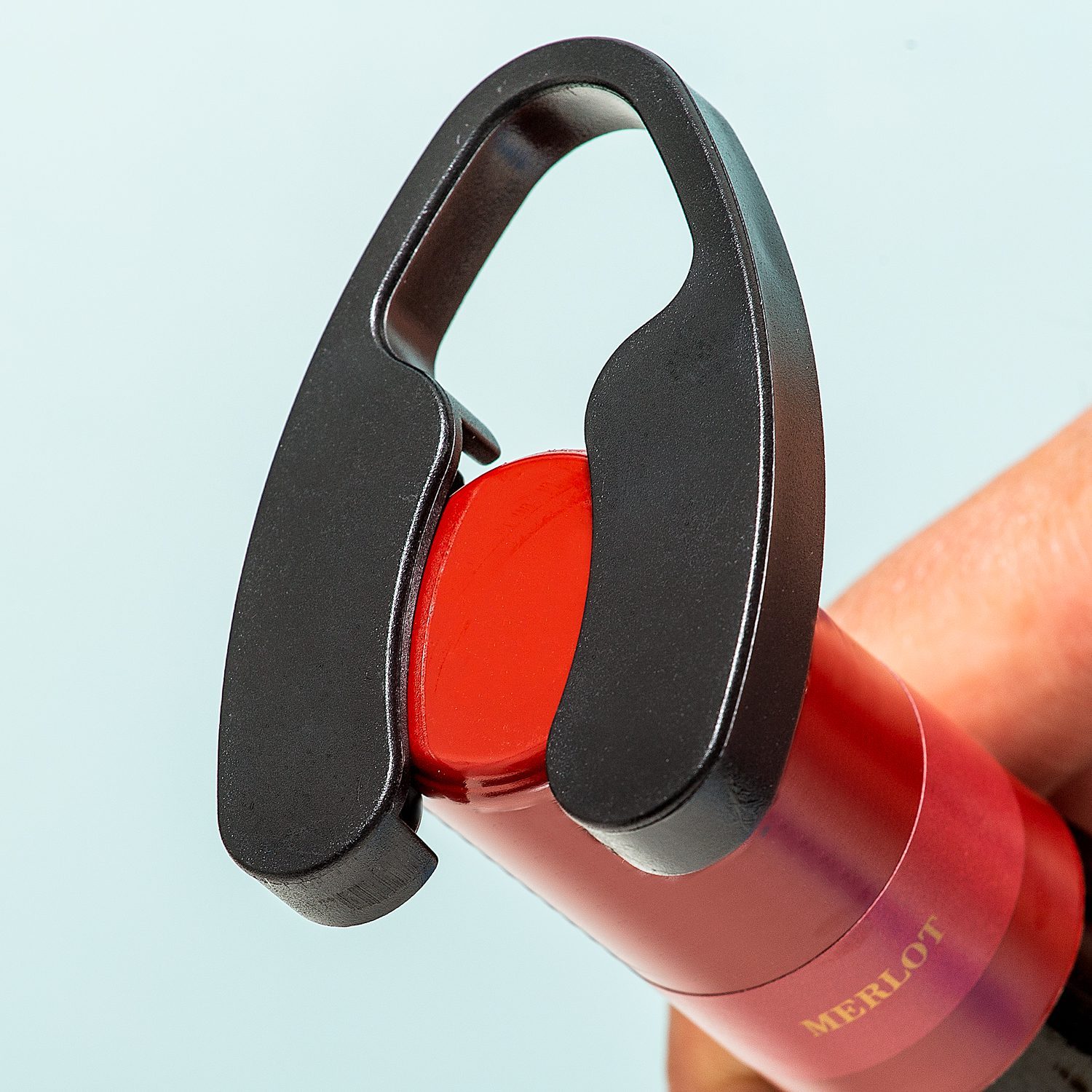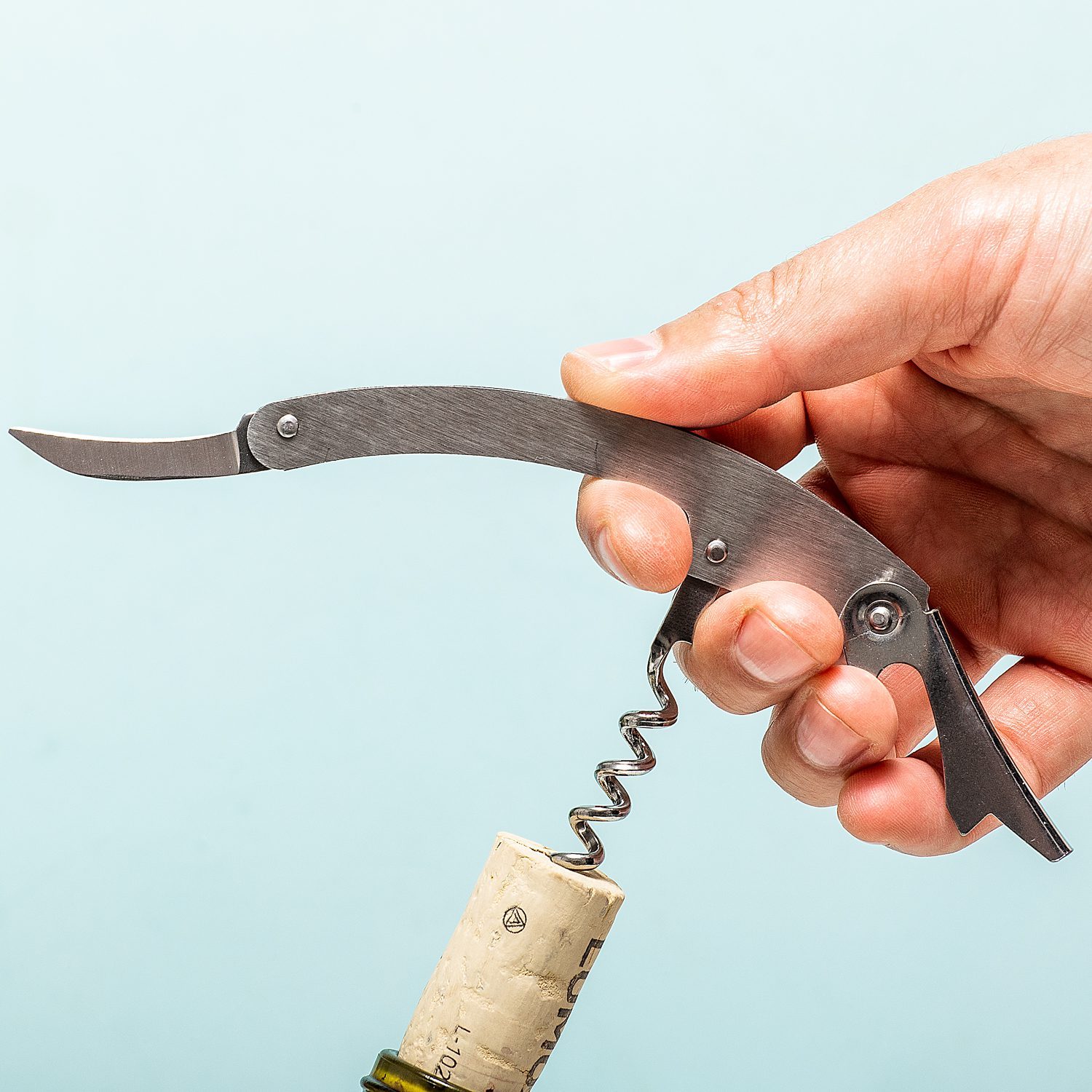 - Mit Korkenzieher, Flaschenhals, Luftsprudler und Folienschneider