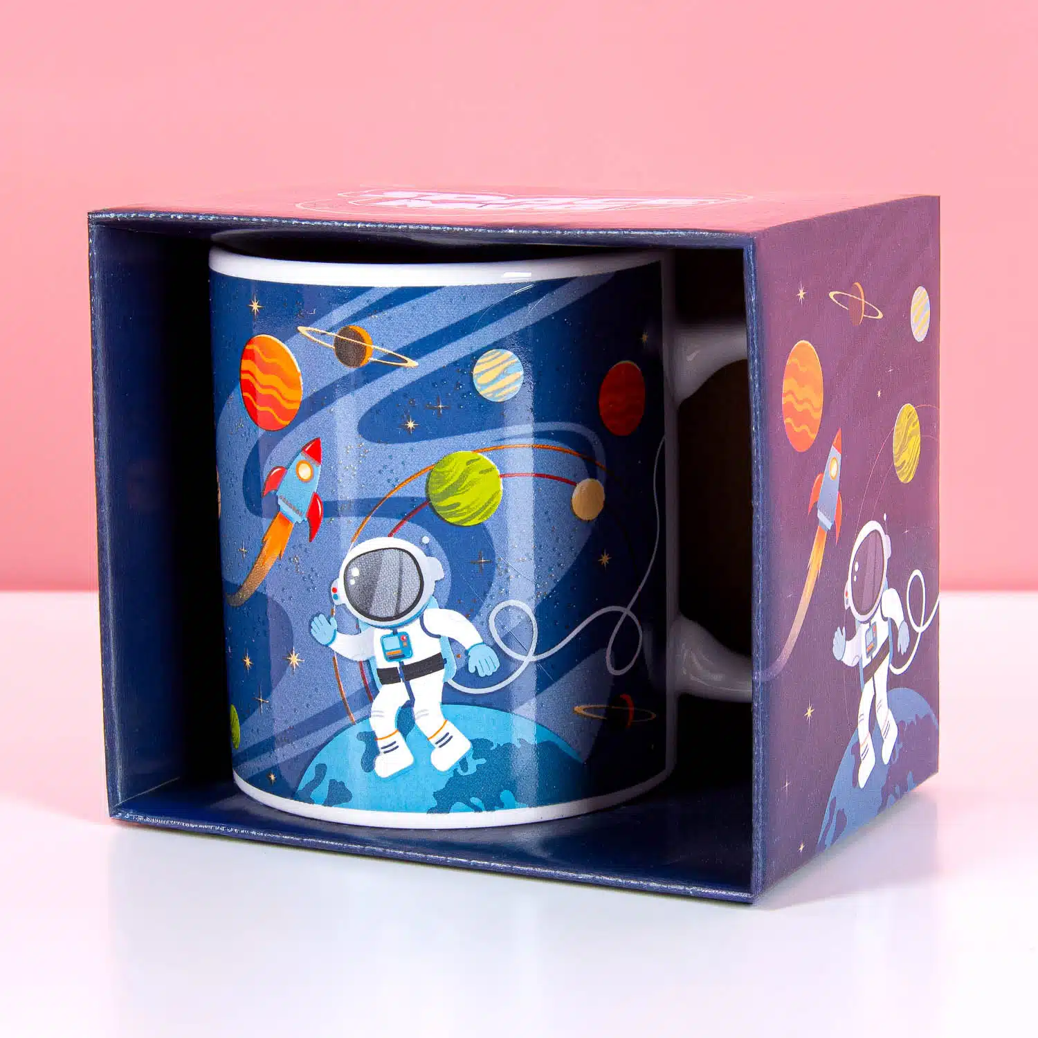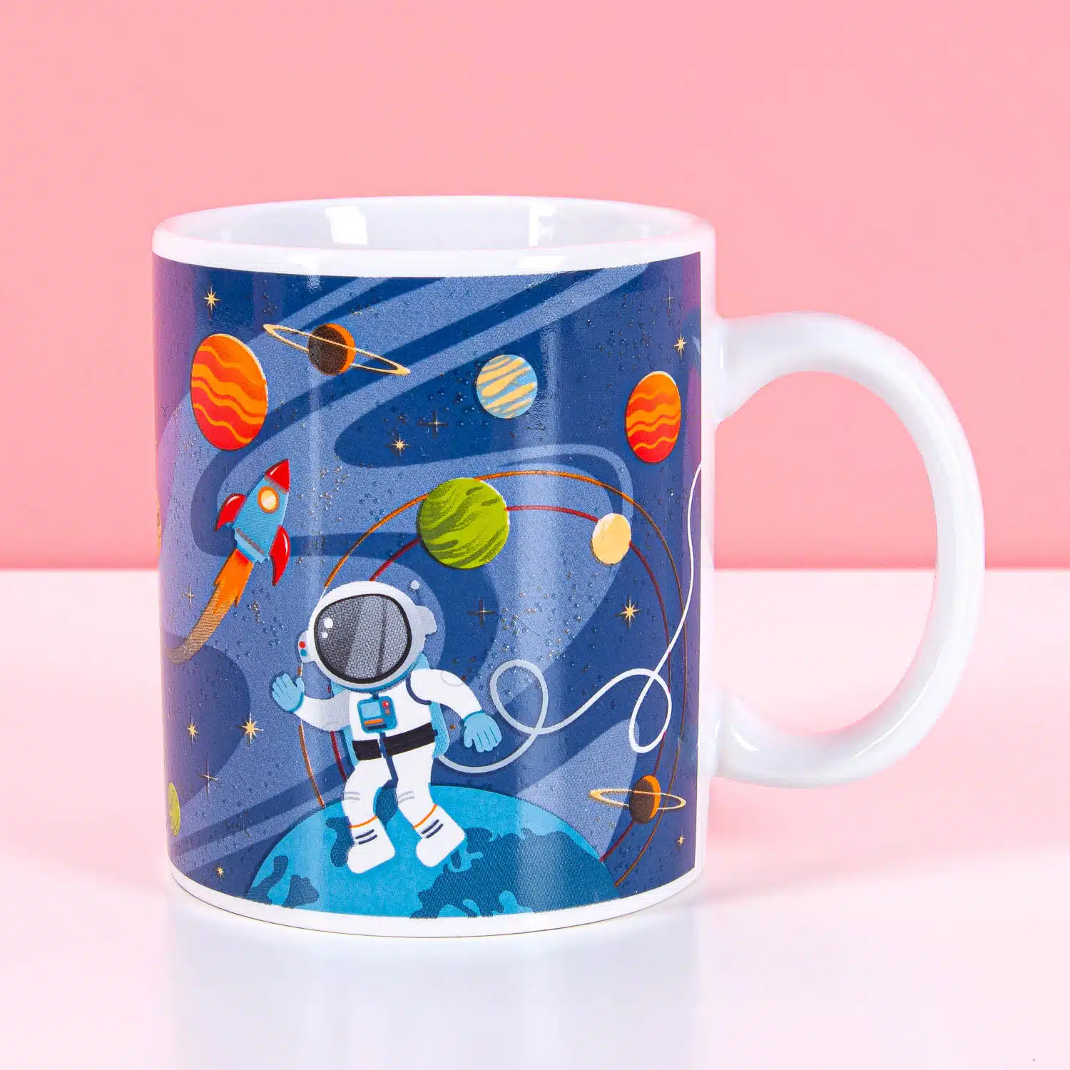 - Tasse mit Weltraumdesign und Raketenhenkel