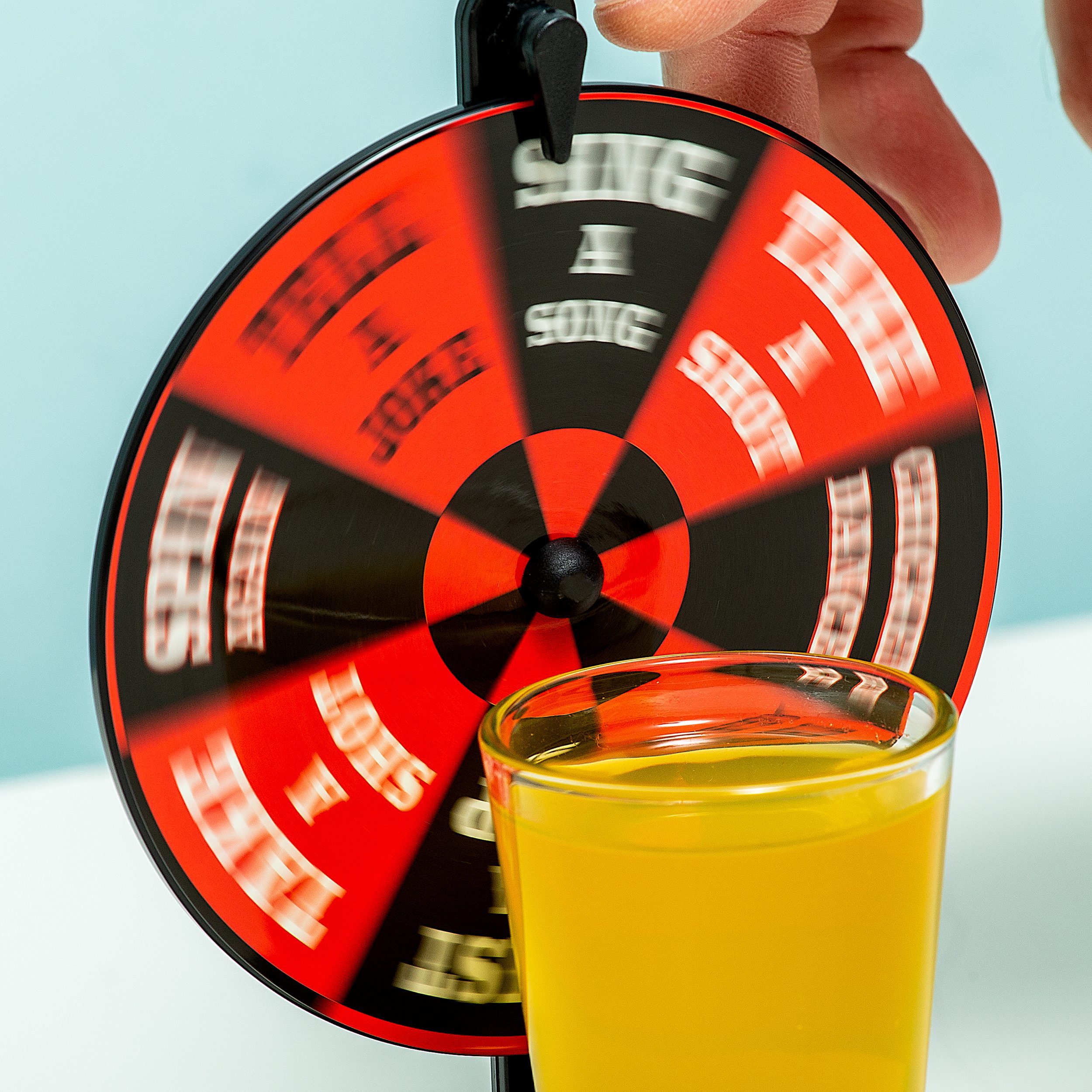 Trinkspiele mรผssen nicht kompliziert sein, um Spaร zu machen. Das Trinkspiel Wheel of Shots von Out of the Blue ist ein gutes Beispiel dafรผr. Dieses Trinkspiel ist einfach: Sie drehen das Rad und fรผhren die Aufgabe aus. Nehmen Sie zum Beispiel eine Aufnahme,einen Witz erzรคhlen oder einfach an dem Getrรคnk nippen. Ein nettes kompaktes Spiel, das man auch in den Urlaub mitnehmen kann.