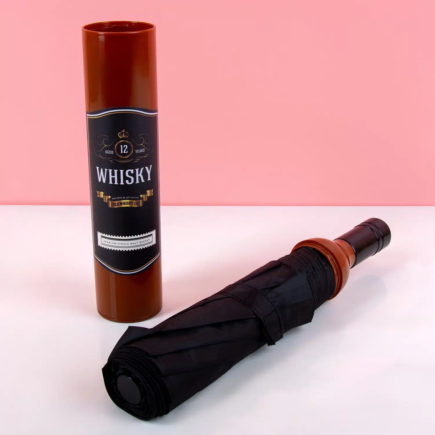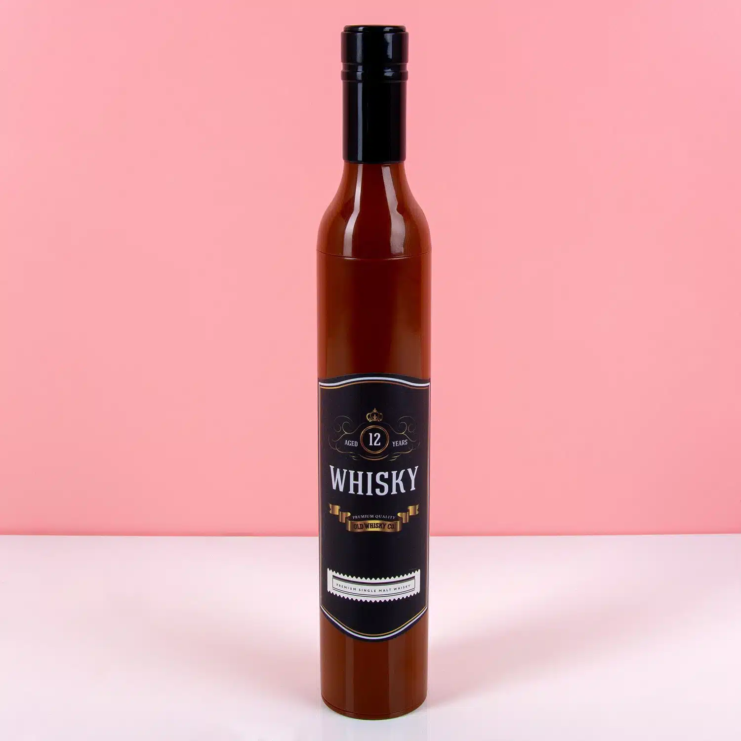 Regenschirm, der wie eine Whiskeyflasche aussieht