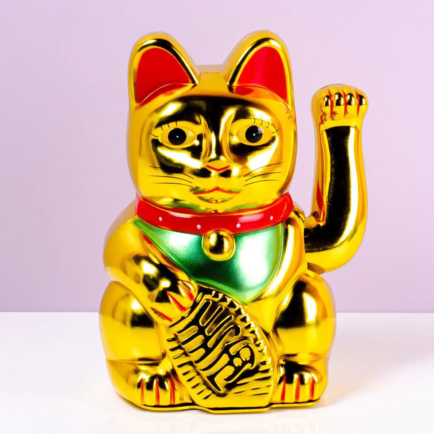 Du kennst sie sicher: die Katzen, die in den Fensterbänken deines lokalen chinesischen Restaurants winken. Die Glückskatze wird traditionell verwendet, um jemandem Glück zu wünschen. Kennst du jemanden, der eine kleine Unterstützung gebrauchen könnte? Dann schenke ihm die winkende Glückskatze. Mit ein paar Batterien winkt sie dir den ganzen Tag Glück zu. Ein nettes Geschenk, um jemandem zu zeigen, dass du an ihn oder sie denkst.