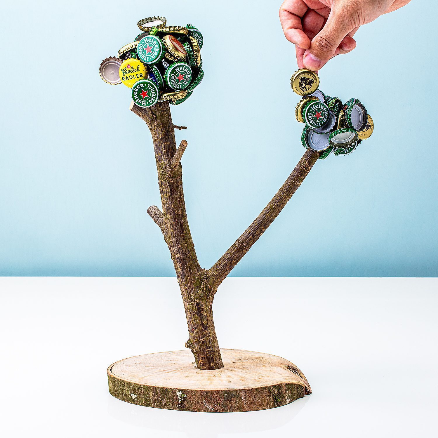 Ihre Arbeitsplatte, Ihr Kรผchentisch und Ihr Couchtisch sind nach einer Party vollgepackt mit Bierdeckeln. Das ist an sich keine schlechte Sache, aber wenn Sie sich das Aufrรคumen erleichtern wollen, dann ist der XXL Bierbaum genau das Richtige fรผr Sie. Dieser praktische Magnetbaum fรคngt Ihre Bierdeckel auf. Am Ende der beiden Stรคmme befinden sich starke Magnete. An jedem Magneten kรถnnen bis zu 60 Kronkorken haften. Werfen Sie Ihren Bierdeckel auf den Bierbaum und wenn Sie richtig zielen, bleibt er am Baum haften.