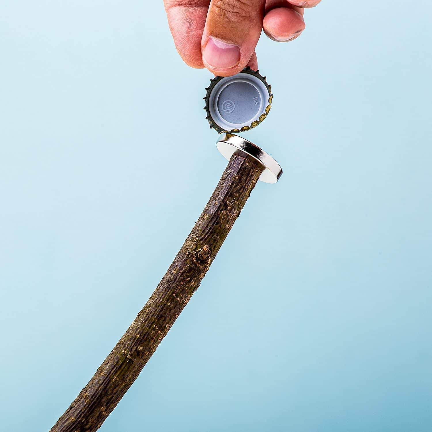 - Werfen Sie Bierdeckel auf den Baum und sie werden vom Magneten angezogen